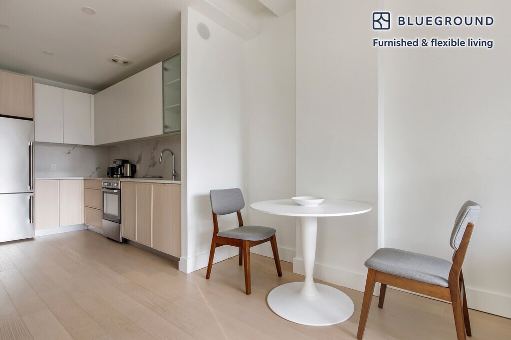 Discover the best of New York, with this one bedroom apartment in Downtown Brooklyn. It’ll be easy to simply show up and start living in this furnished apartment with its fully equipped kitchen, living room, and our dedicated, on-the-ground support. (ID #NYC2187) The advertised rate of $2,850/month is the lowest available price, based on a 2 month(s) and 14 day(s) stay with a move-in date of December 24, 2025. If you’re looking for a 1-year stay, the rate is $5,840/month. Rates vary depending on the duration of stay, season, and other parameters. For exact pricing and additional pricing components, please visit our website and enter your desired move-in and move-out dates. The rate is applicable when billed upfront; it can be higher if billed in multiple payments. Brokers are welcome to reach out. Were you looking for an unfurnished lease? Try Blueground instead and upgrade from unfurnished to furnished living: - Furnished at rates comparable to unfurnished - No setup or furniture costs - save thousands - Move-in ready - save time, just bring your suitcase Designed with you in mind Thoughtfully designed with bespoke finishes, modern furnishings, and a fully equipped kitchen, you’ll enjoy that “I’m home” feeling with this Blueground apartment. Whether you’re lounging in your stylish living room streaming the latest and greatest entertainment on the smart TV or premium wireless speaker, or getting some well-earned rest on the superior quality mattress with luxury linens, you’ll fall in love with everything this Downtown Brooklyn apartment has to offer. This apartment also offers in-apartment laundry. Sleeping arrangements Queen Bed, 63in/160cm Amenities Building amenities unique to this one bedroom apartment include an on-site: - Doorman - Dryer - Elevator - Washing machine - Lounge - Library - Media room - Pets allowed - Playroom - Rooftop BBQ - Sauna Arrival and ongoing support The entire apartment is yours to enjoy! Throughout your stay, you’ll have access to our Client Experience team through the Blueground App. You can schedule additional cleanings, submit maintenance requests, and view our neighborhood recommendations with just a few taps. We’ll share all details upon confirmation of your stay. Ideally Located This furnished apartment is located in Downtown Brooklyn, one of the borough's most sought-after neighborhoods. The bustling area is characterized by both office towers and residential buildings, so there's a wide variety of restaurants serving cuisine from all over the world, night and day. Downtown Brooklyn is also the site of the Brooklyn Academy of Music, a cutting edge arts complex, and it's an easy walk to the foot of the famous Brooklyn Bridge. The neighborhood is served by several subway lines and bus routes, making it easy to get to Manhattan and the city's other boroughs. Other things to note Building amenities may have an extra cost. This Blueground apartment has flexible lease options, allowing you to book it for one month, a year, or more. Pets are welcome, though weight limits and breed restrictions apply and may incur fees. Brokes CYOF. We take great pride in ensuring every photo displayed is shot in our own units with our actual furnishings. That said, we regularly refresh our decor and furniture arrangement, which may differ from what’s pictured. [GO]