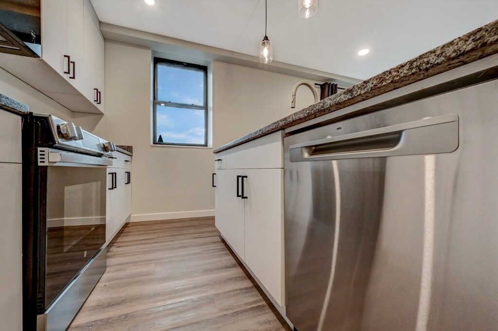 Nestled in the heart of Dickson City in the Scranton area, this beautifully restored century-old building has been transformed into ten exquisite luxury apartments, each exuding classic character and contemporary appeal. Retaining its historic facade and old-world brick exterior, the structure showcases architectural details such as floor-to-ceiling windows, original maple flooring, and an exposed brick lobby that tells a story of a bygone era. Inside, the apartments blend minimalist modern design with timeless elegance. Spacious open-concept layouts feature modern finishes and state-of-the-art kitchens with built-in ceiling-high cabinets and top-of-the-line stainless steel appliances. Each unit features ceramic tile bathrooms with a focus on convenience, comfort and style. Floating sink vanities are mounted over classic octagon tile work, and heated flooring and towel racks in master bathrooms evoke a spa-like comfort and ambiance. Oversize tubs and showers feature chrome fixtures with a hand-held wand and rainshower options. With its prime location near Commerce Boulevard and adjacence to the city of Scranton, the building provides easy access to local restaurants and shops, making it an ideal sanctuary for those seeking a blend of luxury and historic charm.
