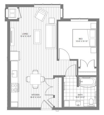 - 1 Bedroom- 1 Bedroom A- From $1,2251 Bed, 1 Bath, 641 sq ftPlus FeesAvailable Now- Model Gallery- Floorplans- Availability Details- Price - Availability Date - Unit - Sq Ft - From $1,225 - Available Now - 1 Bedroom A - 641 sq ft - Model Amenities and Features- Kitchen- Dishwasher