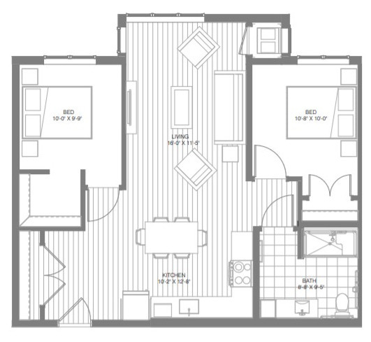 Apartment Model: 2 Bedroom A$1,6082 Bedroom, 1 Bath, 835 sq ftAvailable Now![]() - 2 Bedroom A - Floorplan 1
