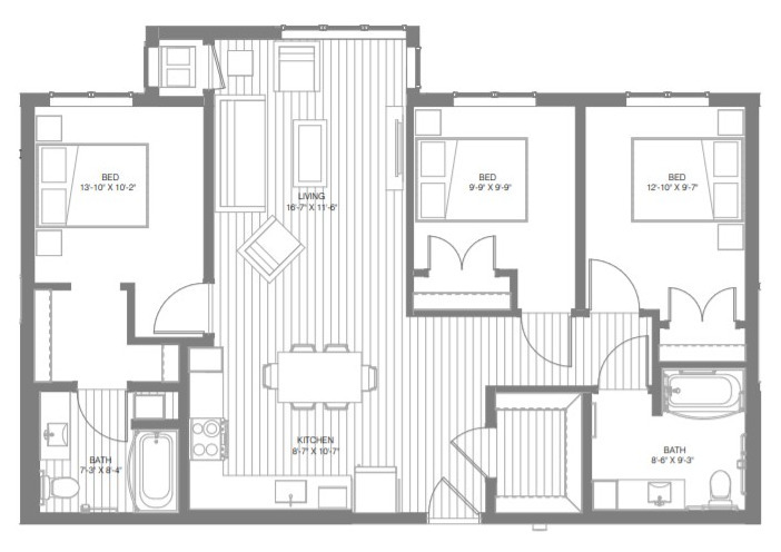 Apartment Model: 3 Bedroom A$1,8523 Bedroom, 2 Bath, 1205 sq ftAvailable Now![]() - 3 Bedroom A - Floorplan 1