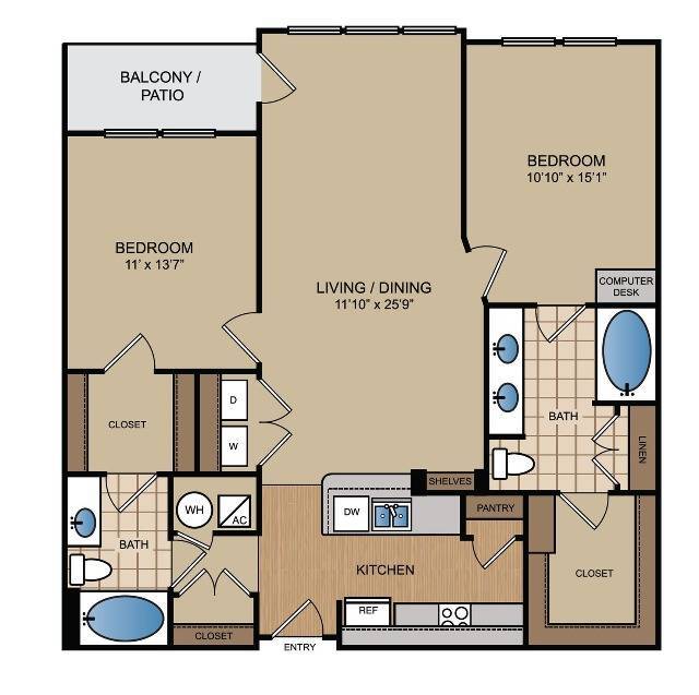 Apartment Model: A8From $1,9541 Bedroom, 1 Bath, 833 sq ftAvailable Now![]()