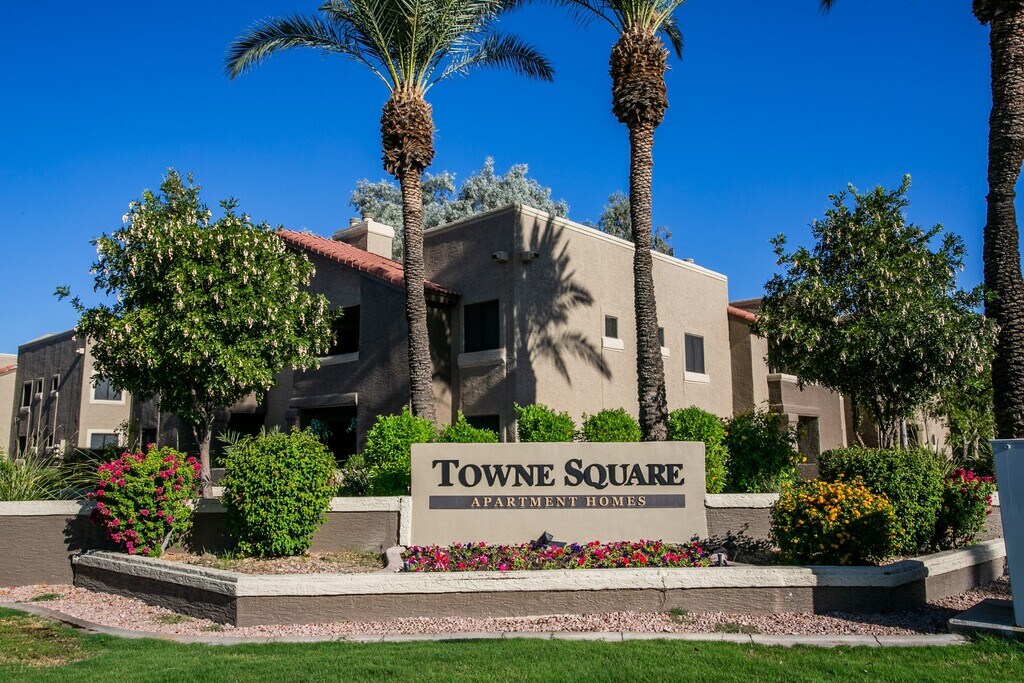 The benefits of living in East Valley and Chandler, AZ are beautifully represented at Towne Square Apartment Homes, a top rated community. Local flowers and lush trees abound are against the backdrop of southwestern architecture and style. The location, just north of Chandler Boulevard and one block west of the 101 Loop, offers a quiet residential atmosphere convenient to downtown Chandler and the Fashion Center. We are also adjacent to Kyrene Del Sureno Elementary School and Harter Park. Our great location, numerous amenities, and professional management team have made Towne Square a top-rated apartment rental community. We strive to provide an exceptional living experience. Towne Square offers ten unique floor plans with one, two or three-bedroom layouts to fit every lifestyle. Every apartment home has a private patio, full kitchen with efficient appliances, washer/dryer, large closets, and prepared for high-speed internet and digital cable. Our community amenities include a state-of-the-art fitness center, four swimming pools, resident EV charging stations, and an upscale clubhouse. We know you will love your life in Chandler at Towne Square Apartments! Call today for a tour.