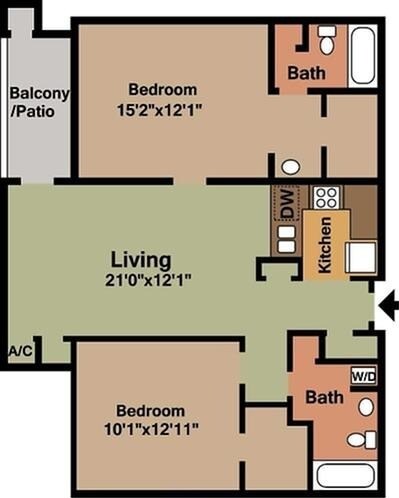 Apartment Model: Two Bed L$1,1952 Bedroom, 2 Bath, 960 sq ftUnavailable![]()
