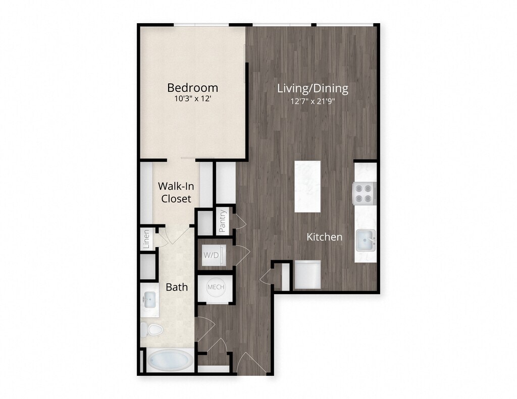 1 Bed, 1 Bath, 699-735 sq ftAvailable NowCheapest 1 BedroomThis is the cheapest 1 Bedroom at this PropertyModel Gallery