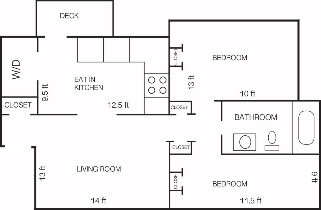 2 Beds, 1 bath - Floorplan 1