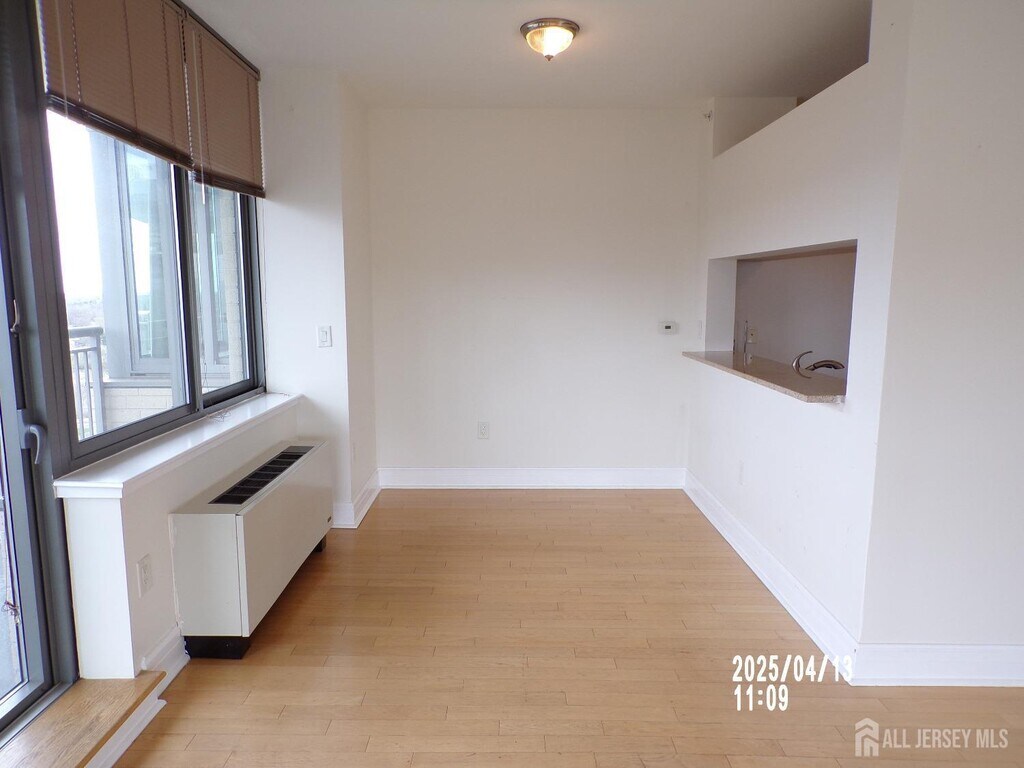 Rental in the heart of New Brunswick,desirable luxury hi-rise at "One Spring unit #1604. "Meticulously maintained end unit with a balcony on the 16th floor. Beautiful panoramic views overlooking the Raritan River & central NJ. Move-in Ready...2 bedrooms & 2 bathrooms,primary bedroom features an en-suite bathroom with soaking tub,separate shower and walk-in closet. Kitchen has stainless steel appliances,newer Quartz countertops. Hardwood flooring with some ceramic tile,and high ceilings throughout. Open floor plan with southwest views. Shades on all windows and ample natural lighting. Washer/Dryer in unit and storage #(79) in basement. Enjoy the July 4th/New Years Eve fireworks and the fall season with visually pleasing palate of reds,oranges and brown leaves from your balcony or from the Skydeck located on the 25th floor. Upscale amenities: 24-hr concierge,indoor pool,sauna,gym,Skydeck,club/party room(can be rented),promenade with barbecues,beautiful landscaping. Parking is available at an additional fee and garages have charging stations. Included in rent: HOA fee,water,gas,heat & Storage.