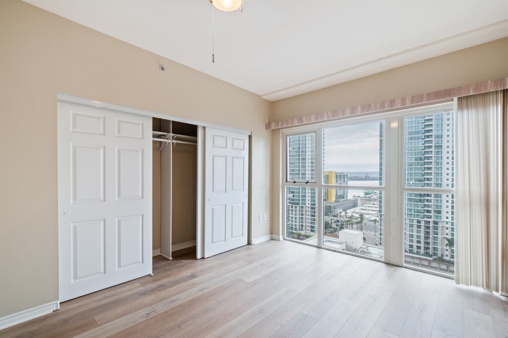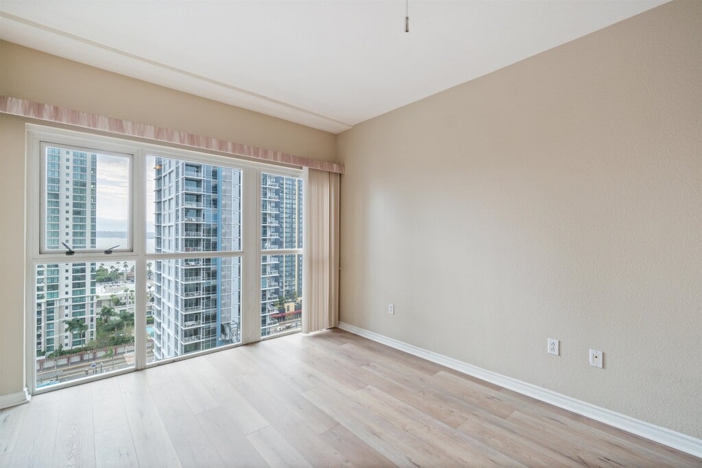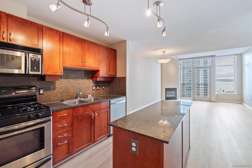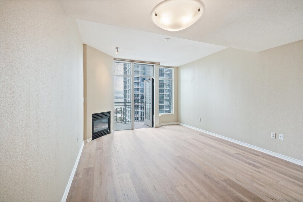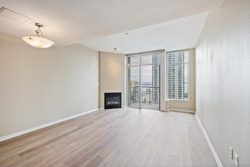 Welcome home at Treo,a highly sought-after community in the prime Columbia/Little Italy district! This UNFURNISHED,west-facing residence offers breathtaking city and bay views with unforgettable sunsets. Step inside this unique 2 bedrooms,2.5 baths,and 2 parking spaces. The open,full-size kitchen with granite countertops is perfect for both cooking and entertaining. The 15th-floor setting boasts beautiful engineered plank flooring,soaring ceilings,A/C,and a cozy gas fireplace that adds warmth and charm. Residents enjoy an array of top-notch amenities including a community room,BBQ courtyard,pool,fitness center,and more. Best of all,you're within walking distance to everything Little Italy's famous farmers' market,trendy restaurants,cafes,bars,boutiques,Seaport Village,the Gaslamp Quarter,Petco Park,Balboa Park,the bay,plus easy access to the train,trolley,airport,and freeways. Available now don't miss this incredible opportunity! MLS# 240016230
