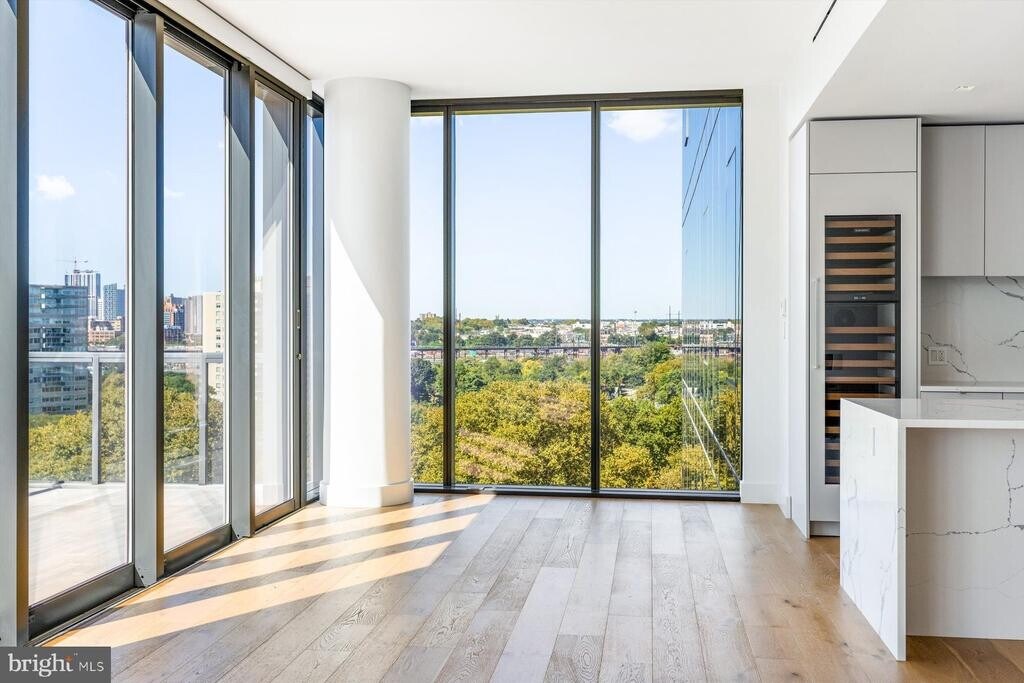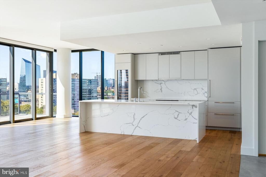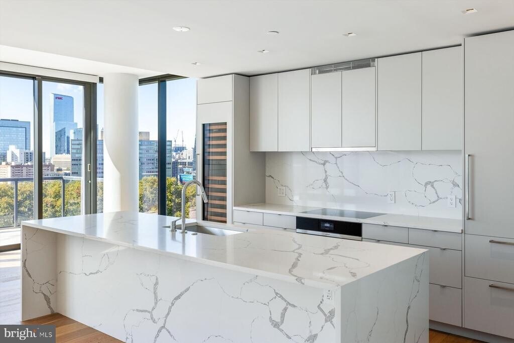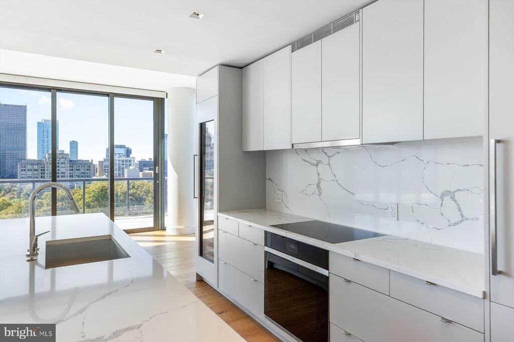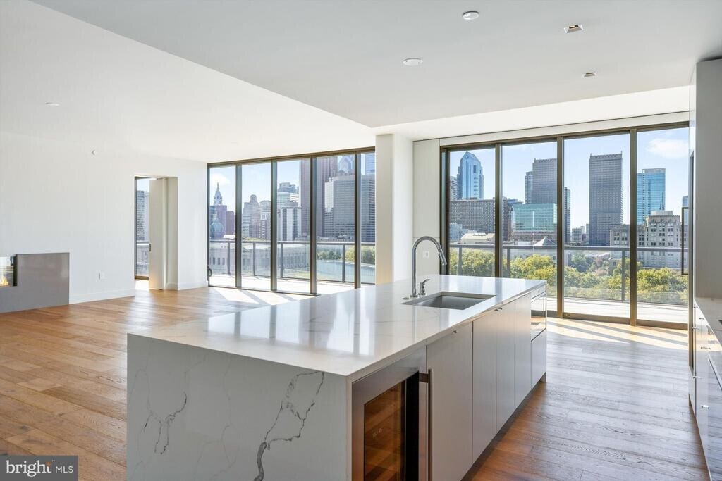 Introducing Residence 9E, one of 2100 Hamilton’s most spectacular new units, complete with its own 425-square-foot balcony! Offering almost 3,300 square feet awash in natural light, this all-new condominium is right below the penthouse, giving it panoramic city views from inside and out. Its open floor plan offers roomy living/dining with floor-to-ceiling doors opening to the 47-foot-long balcony, creating exceptional indoor-outdoor living. Its state-of-the-art designer kitchen and baths from Joanne Hudson offers every luxury. The kitchen is outfitted with Sub-Zero/Wolf/Cove appliances, plus a full-size wine cooler and separate pantry. There are three bedrooms, 3.5 baths, and a potential fourth bedroom in a den that can be closed off with pocket doors. A two-sided gas fireplace serves the den and living room; a second gas fireplace is in the primary bedroom suite. The main suite bath offers radiant-heated floor and oversized glass-walled shower with glass that frosts for privacy at the touch of a button. These sumptuous private quarters also offer a walk-in closet outfitted in organizers and built ins. There is a laundry room with full-size washer and dryer. All windows are pre-wired to accommodate power window treatments (being currently installed). 2100 Hamilton is a new, exclusive, luxury condominium building with only 27 units in the heart of the Art Museum Area designed to offer the ultimate in privacy. With the Rodin and Barnes Museums as its neighbors, spectacular views of the city skyline from every unit and a wealth of private greenspace at its base, the 10-story 2100 Hamilton is ideal for those seeking the finest in luxury living in this park-adjacent city neighborhood. Pull into the garage drop-off station where a valet is available to assist you. The elevator, which uses facial-recognition technology, will take you directly into your residence, eliminating shared hallways. 2100 Hamilton has the city’s largest residential garden and event plaza, designed by renowned landscape architect Sikora Wells Appel, with water and fire features and multiple seating areas to accommodate a group or a private spot just for you. Additional building amenities include an indoor infinity pool, guest suite, boardroom, top-grade fitness center, catering kitchen and amenity lounge, town car and driver, and 24-hour concierge.