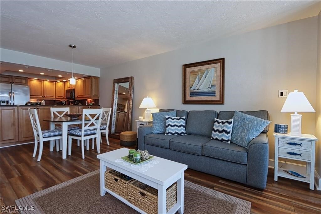 AVAILABLE for the 2026 Season and beyond! Shuffling along the white sandy beaches of Bonita Beach you will find Seascape Condominiums! Ideally positioned at the end of Bonita Beach where traffic disappears,and water surrounds you! Enjoy Unobstructed GULF-FRONT views from this beautifully updated,4th floor,one-bedroom/one-bathroom,BEACHFRONT condo. Located in the highly sought after Seascape E Bldg,this unit has been meticulously maintained and is fully equipped and turnkey furnished. Improvements include updated kitchen with granite countertops,solid wood cabinets & upgraded appliances,updated bath with granite countertop,full size washer & dryer,and screened-in lanai with impact slider windows,providing additional under-air living space for watching amazing Sunsets year-round. Two building elevators allows easy access to the condo. Seascape is a socially active,gated seaside complex located at the Northern tip of Little Hickory Island on a cul-de-sac. Amenities include a Gulf front heated swimming pool and shuffleboard,community room,on-site management office,and a Bay side sport complex with tennis & pickleball courts,basketball court,BBQ grills,fishing pier,and gulf access boat slips that at times are available for lease.