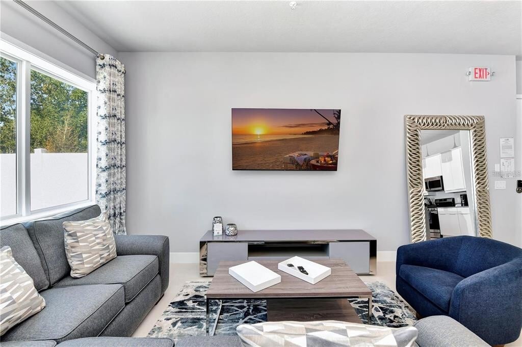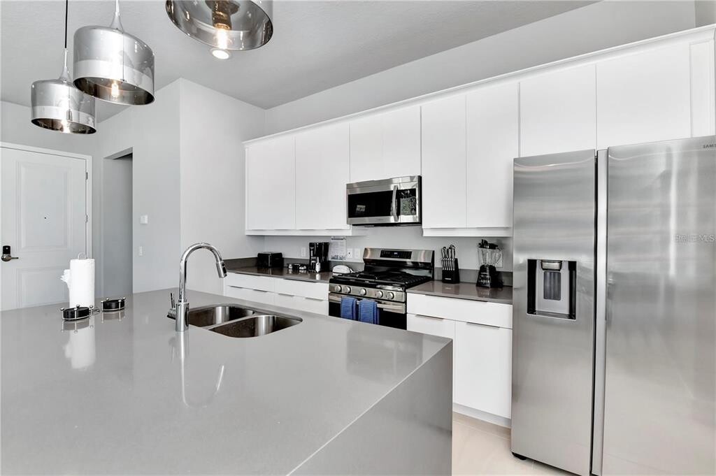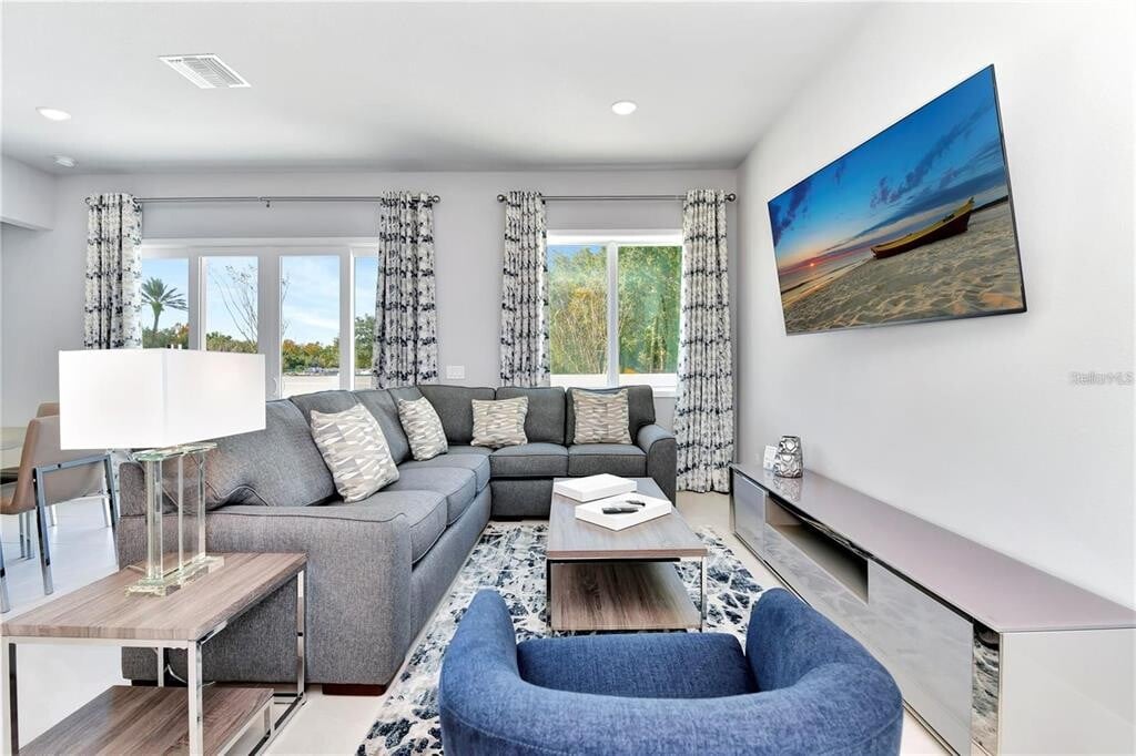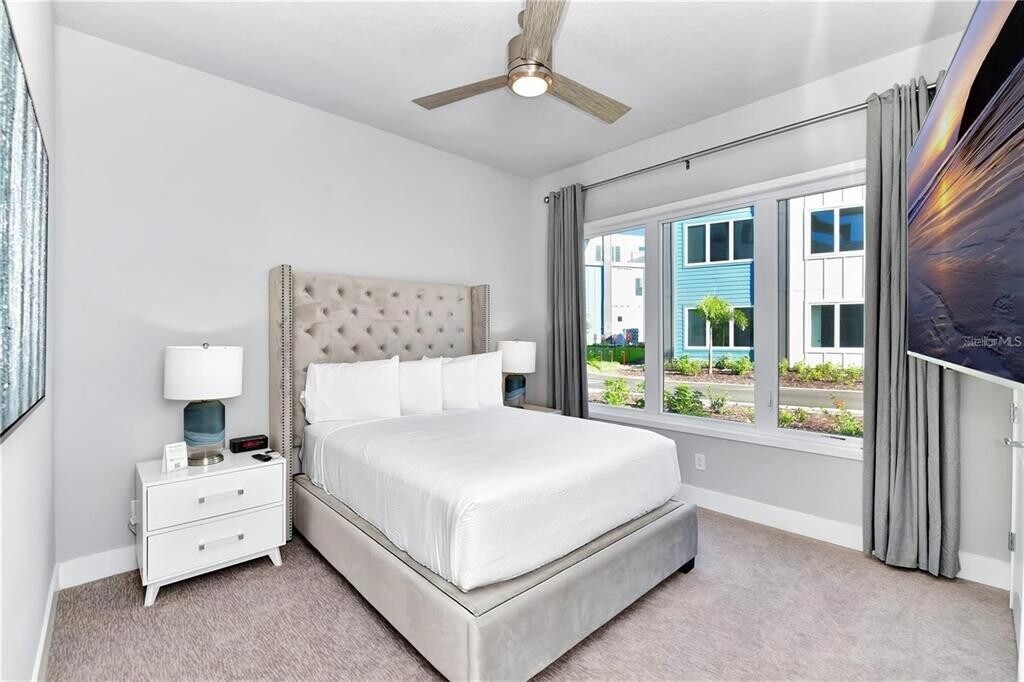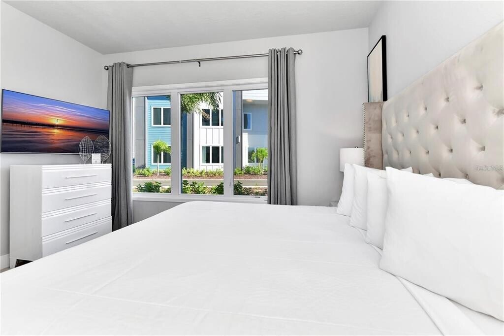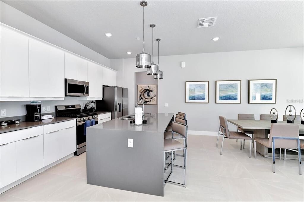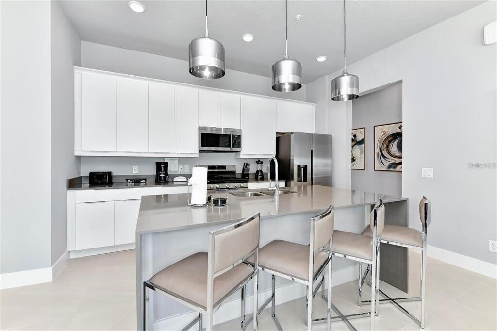 This sleek,modern ground-floor condo in the renowned Spectrum at Reunion Resort offers the perfect combination of style,comfort,and convenience. Located just minutes from Walt Disney World,this furnished 3-bedroom,3-bathroom home is move-in ready. The open floor plan features contemporary finishes,a spacious kitchen with stainless steel appliances,a gas stove,and a stylish island. The natural light-filled living area opens to a large paved patio—perfect for relaxing or hosting guests. The master suite includes a walk-in closet and an ensuite bathroom with a walk-in shower and dual vanities. A laundry closet with a stackable washer and dryer adds to the convenience. Enjoy world-class amenities,including a resort-style pool,a state-of-the-art gym,and a water park with a lazy river and slides. Reunion Resort spans 2,300 acres with three championship golf courses designed by Nicklaus,Palmer,and Watson,as well as tennis courts,multiple pools,fine dining options,and more. Don’t miss the chance to live in luxury—schedule your viewing today. MLS# O6298974