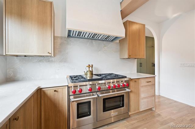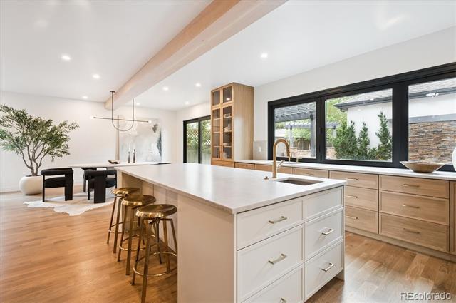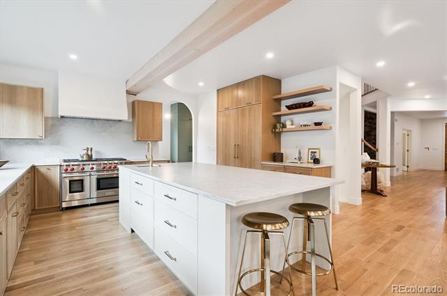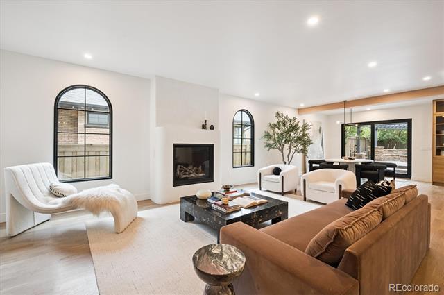 This west-facing Cory-Merrill home has been thoughtfully upgraded, simultaneously blending timeless elegance with modern comfort. A brick-accented porch welcomes you into a bright foyer flanked by a sunny piano room to the right and a generous living room to the left, each framed by glass doors that flood the spaces with afternoon light. At the heart of the home, a custom winding staircase leads to an expansive family room appointed with privacy windows and a gas-insert fireplace. The open-plan kitchen boasts a substantial quartzite island, Wolf appliances, a cozy breakfast nook, a butler’s pantry with hidden food storage, and a pebble icemaker both upstairs and in the basement. A formal dining room provides the perfect setting for holiday gatherings. Upstairs, four large bedrooms—including two with private patios—are served by two ensuite baths and a connecting bathroom. The primary suite impresses with vaulted ceilings, its own gas-insert fireplace, a five-piece bath, and a generous walk-in closet. Downstairs, the finished basement features newer carpet, 9-foot ceilings, two additional bedrooms with egress windows, a home office, a full bath, abundant storage, and a sprawling entertainment room complete with a second gas-insert fireplace, full wet bar, ice machine, kegerator, and wine cooler. The outdoor living spaces are equally spectacular. A professional hardscape design incorporates stamped and stained concrete, natural stone accents, a built-in gas fireplace, outdoor kitchen with grill, dining terrace, stone water wall, pergola-covered lounge, integrated stone bench seating, heat lamps, and landscape lighting. The front yard’s professional landscaping highlights a brick porch and walkway. Single Family Residence MLS# 6221704