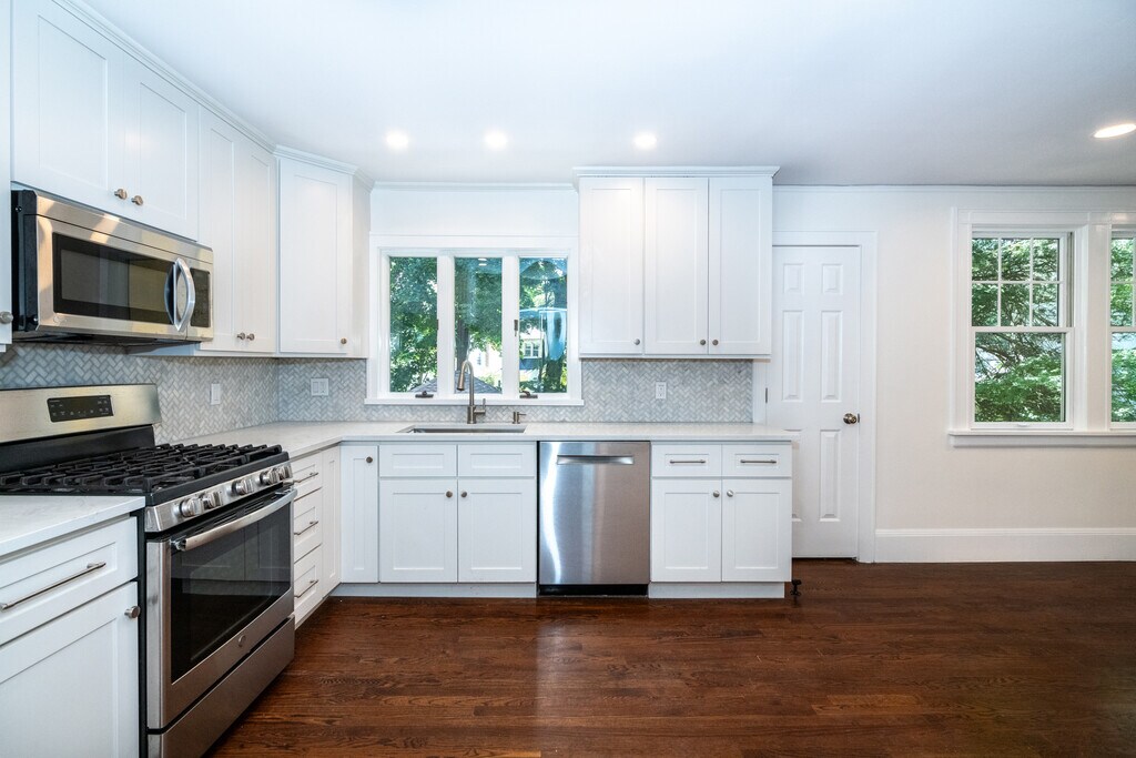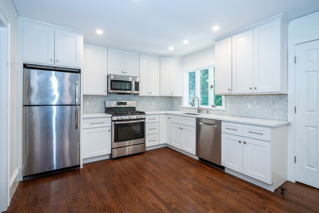 Newly renovated rental with open layout and fantastic upgrades in a walk-to-all location. The first floor is open and bright with a large, multi-use living room and play/office space. The first floor also features a decorative fireplace and powder room. The kitchen is 2 years old with SS appliances, Bosch dishwasher and opens to the dining room. Upstairs, the primary bedroom has an ensuite bath and generous closet space. Two additional bedrooms, a bonus room, a new hall full bath and linen closet complete the second floor. Walkout lower level has laundry and is open, providing additional space for office, recreation or gym. Sliding doors take you out to patio and private back yard. Garage has ample space for storage or a small vehicle. Enjoy all Larchmont has to offer, just down the road: Village shops, restaurants, farmer's market and an easy commute on Metro North into NYC!