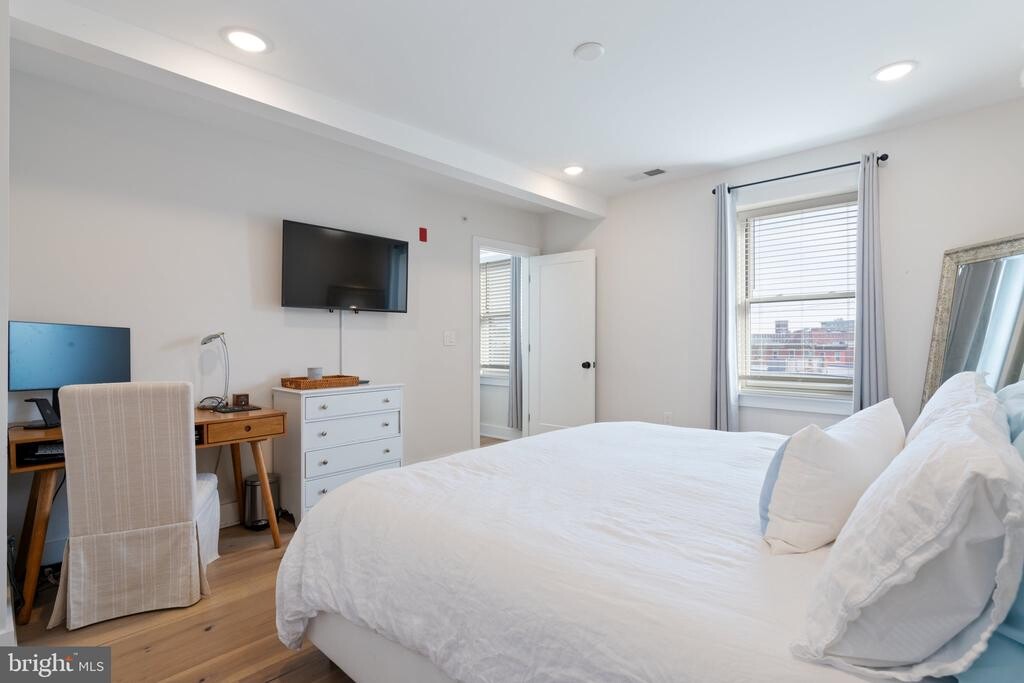 Welcome to Unit 1B at The Vine Residence — a stylish, first-floor condo in an exceptional new development. This beautifully designed unit features an open-concept kitchen with ample cabinet and countertop space, a bright and airy living room, and a spacious bedroom. At the heart of the home, the kitchen is outfitted with two-tone UltraCraft cabinets, pure white quartz countertops, Delta Trinsic matte black fixtures, and Whirlpool stainless steel appliances. The generously sized bedroom includes two oversized custom closets with built-in storage, and a washer and dryer are conveniently located within the room. The bathroom showcases designer tile, a custom UltraCraft vanity, Delta Trinsic matte black fixtures, and accessories from the Gatco Latitude II series. One of the standout features of The Vine is the stunning shared rooftop offering breathtaking 360-degree views of the city. The rooftop also features lounge chairs and a fenced-in turf area for pets, as well as a hose for added convenience. Modern resources complete this residence, including a NEST thermostat, Latch Technology secured entry systems, exterior cameras, and bike storage. Located in the ultra-desirable Fairmount neighborhood, this home offers the perfect walkable lifestyle — just steps from top restaurants, cafes, shops, and cultural landmarks. Enjoy being a short walk from local favorites like Eastern State Penitentiary, Urban Saloon, and The Met, with everything the neighborhood has to offer right outside your door. Come in, fall in love, and make it yours.