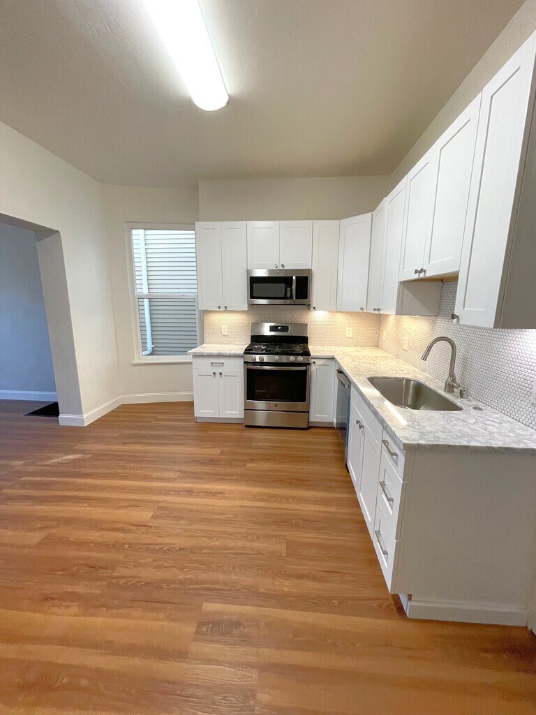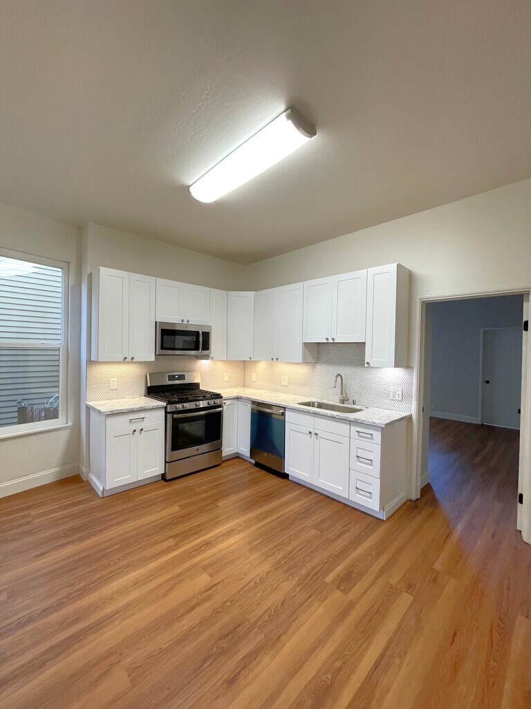 4 Bed 2 Bath Historic Charm Meets Modern Comfort Radiance in West Oakland Rent $4,200.00 Deposit $4,200.00 This radiant Victorian home sits in a highly sought-after pocket of West Oakland, surrounded by a dynamic mix of longtime residents and newer arrivals. Built with character and thoughtfully updated, it offers the best of both worlds. Key Features: • Original parquet floors, softwood staircase, and bay windows • Three spacious bedrooms upstairs plus a first-floor primary suite with en suite bath • Renovated kitchen with white Shaker cabinets, marble countertops, and penny tile backsplash • Pantry, laundry room, and energy-efficient window upgrades • Sunny backyard patio, fenced garden, and partial basement for secure storage Prime Location: • Quick access to BART, Jack London Ferry, and major East Bay freeways • Near Uptown's Art Murmur, Prescott Night Market, and Swan's Market • Close to Fox and Paramount Theatres, Michelin-starred dining, and Raimondi Park Outdoor Details: Low-maintenance front yard with landscape rock and water access for future planting. Potential for off-street parking (buyer to verify). Backyard is fully fenced and ready for gardening, play, or pets. Come home to light, culture, and connection—this West Oakland gem is ready to welcome you. Victorian Home West Oakland