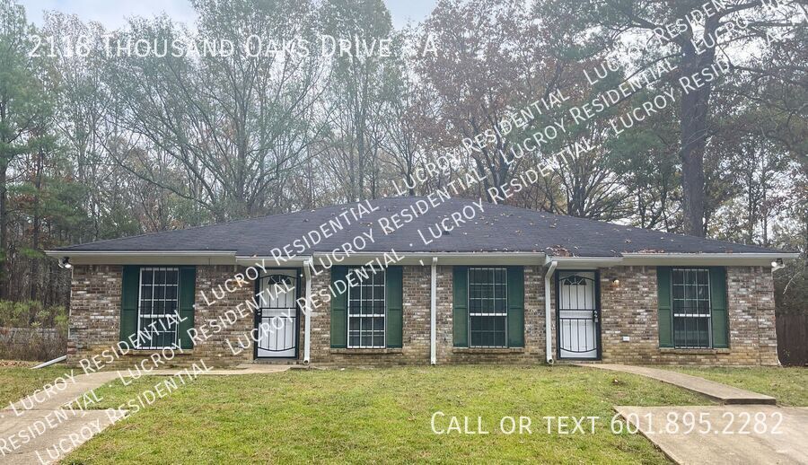 **MOVE-IN BONUS: HALF OFF FIRST MONTH'S RENT IF A LEASE IS SIGNED BEFORE JANUARY 31ST** Welcome to your new home at 2118 Thousand Oaks Drive, Unit #B, in Jackson, MS. This charming house, built in 1992, offers 1,197 square feet of comfortable living space. The property features three spacious bedrooms and two well-appointed bathrooms, providing ample space for relaxation and privacy. Step inside to discover a welcoming interior with a layout designed for both functionality and style. The living areas are bright and airy, perfect for entertaining or unwinding after a long day. The kitchen is equipped with essential appliances and offers plenty of counter space, making meal preparation a breeze. Each bedroom is generously sized, providing a cozy retreat with ample closet space. The bathrooms are thoughtfully designed, featuring modern fixtures and finishes that add a touch of elegance to your daily routine. Outside, the property boasts a lovely yard, ideal for outdoor activities or simply enjoying the fresh air. The location on Thousand Oaks Drive offers a peaceful neighborhood setting while still being conveniently close to local amenities, shopping, and dining options. This house is a perfect blend of comfort and convenience, ready to welcome you home. Don't miss the opportunity to make this delightful property your own. Section 8 Accepted!