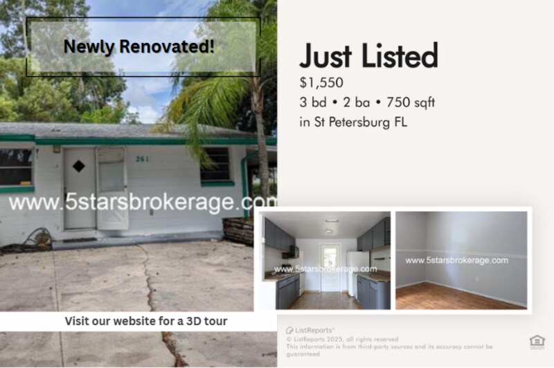 *** FREE APPLICATION & FREE JANUARY RENT *** For any questions regarding the property or the rental process please call or text Beautiful 2 beds 1 bath is available for rent in St. Petersburg with 10 Stars Property Management Discover comfort and convenience in this charming Saint Petersburg home located at 2611 41st Avenue North! Nestled in a quiet neighborhood just minutes from Downtown St. Pete, this property offers easy access to I-275, making commutes a breeze. Enjoy nearby attractions like the St. Pete Pier, and the Sunken Gardens, or spend weekends exploring the trendy Central Avenue dining and shopping district. You're also close to Crescent Lake Park, St. Petersburg Museum of Fine Arts, and just a short drive to the award-winning Gulf beaches. With its prime location, this home combines peaceful living with vibrant city life right at your doorstep! 3D Virtual Tour: Click Here to Explore Features: - Application fee will be credited back on the 1st month of rent if approved - Easy-to-maintain vinyl flooring throughout the home for added functionality - Basic kitchen appliances for everyday cooking needs - Wood kitchen cabinetry for classic style and durability - Ceiling fans for added comfort and airflow - Bathtub and standup shower for versatile bathing options - Shared laundry room for easy access and convenience - Carport for secure parking and weather protection - Lawn Care Included - Tenant is responsible for paying all utilities - First month rent and security deposit required Pets are allowed. No more than 2 pets per property. Weight limit of 55lbs per pet. No aggressive breeds. Applicants must complete a free pet application and have animal approved with vaccination record. The monthly pet fee will be determined by your pet screening score. Does not apply to medically/emotional support prescribed and/or service animals. Every applicant 18 years of age or older is required to complete a separate application. Each application is a $65 non refundable fee. A credit and background check will be conducted for all applicants, and management approval is required prior to signing the lease. See all rules and regulations at All residents are automatically enrolled in the 10 Stars Resident Benefits Package at a cost of $7.99 per month. This program was developed to enhance the overall rental experience by providing added convenience, protection, and value throughout the lease term. Enrollment is required and cannot be waived. The package may only be initiated at the time of lease signing or renewal and includes a range of benefits designed to promote a more efficient, flexible, and secure tenancy. Renter's insurance required prior to move-in. Please see the link below for more details: . At 10 Stars, we offer multiple services to make your stay with us easy and comfortable. We have a same-day application approval and a quick move-in for no additional cost. Our team is professionally trained and will be able to assist with any leasing, billing, or maintenance issues our tenants have. We also offer an emergency line available 24/7 for any urgent cases. Tenants have access to an online portal where they can make rent payments, communicate with our team and get updates on their payments and maintenance requests at all times.