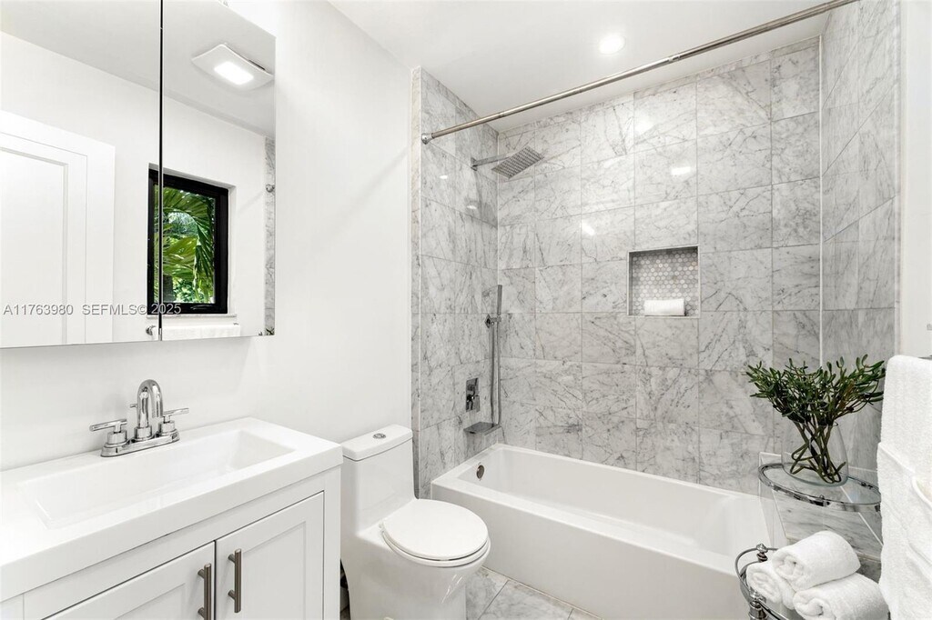 Experience luxury living in this exquisitely remodeled Mediterranean home nestled in the heart of Miami Beach. Boasting 5 beds/5.5 baths, including separate guesthouse w/ full bath, this residence offers unparalleled comfort & sophistication. Indulge your culinary desires in the chef's kitchen, complete w/ LaCornue range & hood combo, double ovens, & SubZero fridge. Enjoy Al Fresco dining or take a dip in the heated saltwater pool w/ spa feature in your backyard oasis. 1st-floor guest room w/ private side entrance ensures privacy for visitors. Unwind in master bath's solid copper soaking tub & dual shower heads. Additional features: dual-zone Nest A/C, alarm system, 2 wood-burning fireplaces, & custom California Closets. This stunning residence captures the essence of old Miami Beach charm