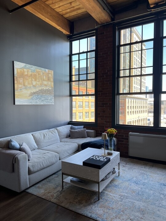 Experience the best of city living in this sun-splashed brick-and-beam residence,perfectly situated in the heart of Fort Point and steps from the Seaport. Soaring 13+ foot ceilings,exposed beams,and hardwood floors create a warm,open feel throughout. Oversized east-facing windows bathe the living area in natural light,while the custom chef’s galley kitchen features abundant storage,quartz countertops,a subway tile backsplash,and a stainless-steel appliance suite.Enjoy thoughtful details like in-unit laundry and generous closet space,plus a shared roof deck perfect for soaking up the summer skyline. Just moments from the neighborhood’s vibrant shops,fine dining,and the scenic Boston Harborwalk,this home offers the perfect blend of historic charm and modern urban convenience the ideal pied-à-terre for city living. MLS# 73453530