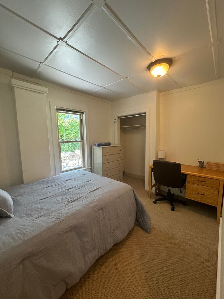 809 S. Aurora is 5/4 bedroom 1.5 bathroom private house is a 5 minute walk to IC, 10 minute walk to the commons and located on a main bus line with access to all of Ithaca. This house has a spacious private parking lot that is plowed during the winter months with a spot for all 5 roommate's and room for an additional 2 cars for any visitors you might have. This property has an eat in kitchen, living room and a large patio space great for gatherings and BBQs. Each room has its own closet and is fully furnished with a dresser, desk and full bed. All utilities (heat, water, electric) are included, the internet is the responsibility of the tenants. This is a single family house with no additional units attached and rents for $3,125 a month. With 5 roommates that is only $625 a month. You can rent this home with fewer tenants and keep the open room(s) for offices or guest. This house is a great deal with any number of tenants!