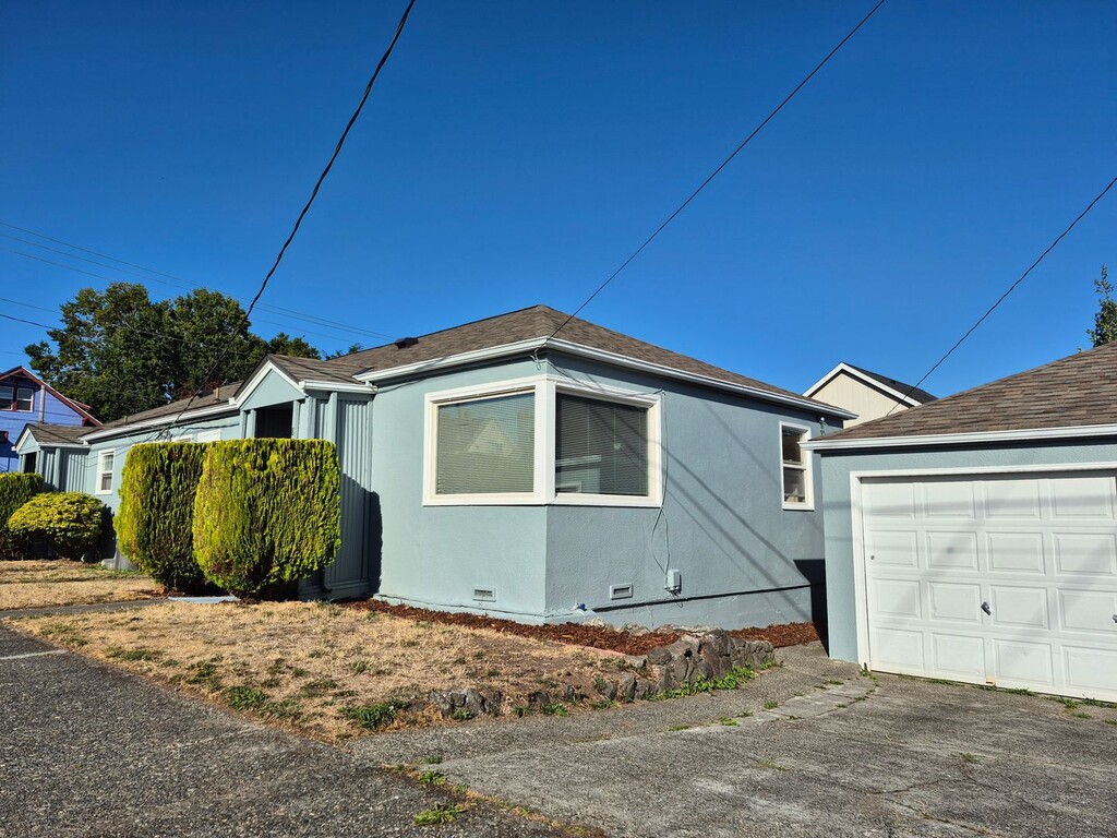 Welcome to our cozy 2 bedrooms & 1 bath unit for rent in early September 2025!! Centrally located on the West Side of Bremerton, walking distance to PSNS gates, ferry boats and all of downtowns amenities. Detached 1 car garage for your vehicle & or extra storage space if needed. Washer and Dryer hookups off kitchen area with second entry way. Hardwood flooring through living room, bedrooms & linoleum flooring in kitchen area & bath. Kitchen has eat in area. Extra build in storage closets & both bedrooms will fit a king sized bed!! No pets. Rent + $100 covers water/sewer.