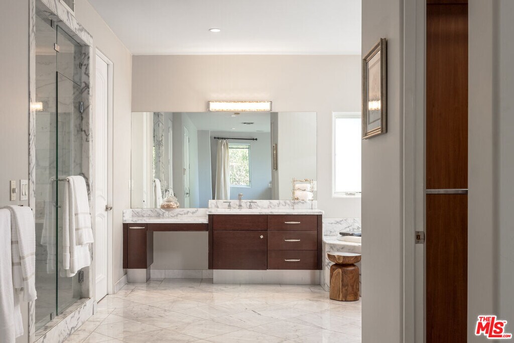 Contemporary Masterpiece! This contemporary dream home features a great-for-entertaining floor plan, grand living room, wet bar w granite counter-tops, & Venetian plaster finished wall fireplace. Formal dining room leads through the butler's station into a professional Chef's kitchen, large center island with sink, stainless steel appliances, custom made cabinetry, 32-bottle wine refrigerator, walk-in pantry, & breakfast area. The first floor also features a large bedroom suite & a luxurious venetian plaster powder room. Glide up the intricate modern staircase with designer railing to the second floor featuring three bedroom suites, including 2 Luxurious Master Suites with steam showers in white Carrera marble, bubbling spa tubs with massaging jets, state-of-the-art bidet toilets, custom made hardwood cabinets, designer sinks, boutique walk-in closets, and fireplaces. Expansive outdoor entertaining area, complete with cabana-style sitting area and lushly landscaped backyard. Enjoy the lifestyle of Melrose, West Hollywood, Beverly Hills, and Sunset Strip! MLS# 26647965