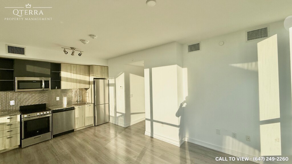 GORGEOUS 2+DEN CONDO WITH PREMIUM AMENITIES Welcome to this beautifully newly renovated 2-bedroom + den, 2-bathroom condo, offering 900 SQFT of thoughtfully designed living space. Located on a high floor with stunning city and conservation views, this corner unit combines modern upgrades, natural light, and exceptional building amenities, perfect for professionals, couples, or small families seeking comfort and convenience. KEY PROPERTY DETAILS: - Type: Condo - Bedrooms: 2+Den - Bathrooms: 2 - Size: 900 SQF - Parking: 1 spot included - Availability: November 1, 2025 - Utilities: Water, Gas and Hot Water Tank Included UNIT AMENITIES: - Condition: Newly renovated and move-in ready. - Upgraded Kitchen: Outfitted with stainless steel appliances, stone/granite countertops, and a stylish backsplash, this kitchen is both elegant and functional. - Dishwasher: Convenient and efficient for everyday use. - Microwave: Modern microwave included. - Flooring: Durable and stylish laminate flooring throughout for a clean, modern look - Laundry: Convenient ensuite laundry for added privacy and ease. - 8.5 Foot Ceiling: High ceilings that create a spacious and airy atmosphere. - Climate Control: Stay comfortable year-round with a personal thermostat. - Bathrooms: The primary bedroom features an en-suite bathroom, offering privacy and modern finishes. - Storage: Walk-in closet in the primary bedroom ensures ample storage space, keeping your living area neat and organized. - Views: Enjoy breathtaking city and conservation views from your corner private balcony. - Open Concept Layout: Spacious and open layout for comfortable living. - Garage Access: Direct walk-out garage access for added convenience. - Furnishings: Offered unfurnished, ready for your personal touch. - Natural Light: Large windows flood the unit with tons of natural light. BUILDING AMENITIES: - Concierge: 24/7 concierge service for added security and convenience. - Gym: Fully equipped gym to meet your fitness needs. - Party Room: Spacious party room for hosting events and gatherings. - Indoor Pool: Relax and swim in the indoor pool. - Security Guard: Professional security guard for peace of mind. - Sauna: Relax and unwind in the sauna. - Guest Suites: Convenient accommodations for visiting friends or family. - Meeting Room: Available for residents to use. - Parking Garage: Convenient parking garage for residents. - Visitor Parking: Ample visitor parking available for guests. NEIGHBORHOOD: De Boers Drive is located in North York's York University Heights neighborhood, offering a prime blend of urban convenience and residential calm. Just minutes from Sheppard West subway station and Downsview Park GO Station, the area provides excellent transit access. Residents enjoy proximity to York University, major shopping hubs like Yorkdale Mall, and green spaces including Downsview Park. Don't miss your opportunity to make it your next home, schedule your private showing today!
