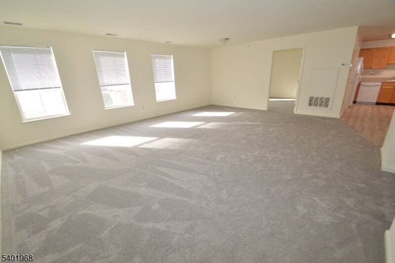 Spacious Two bedroom unit in front of building features open floor plan, carpet, kitchen w/Oak Cabs, DW, Refrigerator & large pantry closet, private balcony... Laundry on each level, Community Room offers great place to gather and enjoy recreation activities including pool table & exercise room? Back paver patio overlooks pond & Gazebo, offering additional seating & gas grill.. Easy walk to town & train!