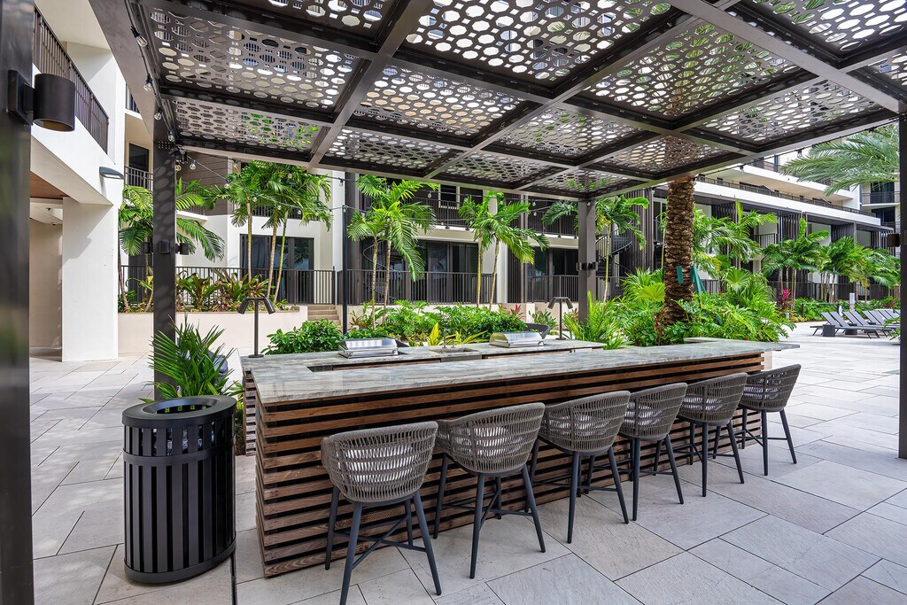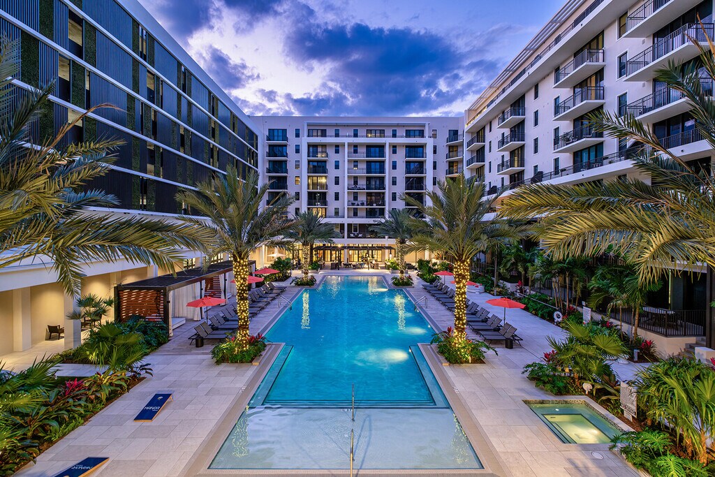 Designed in a contemporary upscale tribal-style design, with lush landscaping and resort-style amenities, Miramar's newest luxury apartments and townhomes offer best-in-class accommodations for the optimal South Florida lifestyle. Come home to a world of unparalleled amenities, including a spacious resort courtyard with a stunning 3,800 square foot pool, as well as 16,000 square feet of indoor amenities, including a miniature bowling alley, multi-game simulator, catering kitchen with built-in wine racks, and full salon and spa, all just seconds from the thriving Miramar Town Center. All in a pet-friendly community, with a private dog park and pet spa.