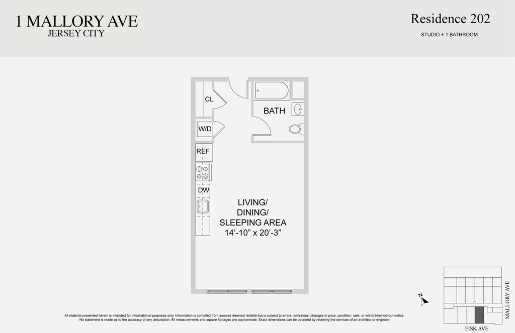 Welcome to 1 Mallory, luxury living on Jersey City’s West Side. Discover elevated city living in our brand-new boutique rental community featuring 44 stylish studio, one-bedroom, and duplex two-bedroom residences. Each home has been thoughtfully designed with modern layouts, premium finishes, the convenience of in-home washer/dryers and large private outdoor spaces, bringing style and sophistication to every detail. Enjoy a lifestyle of comfort and connection with amenities crafted for modern city living. Relax or entertain on the rooftop lounge with sweeping NYC views, stay active in the state-of-the-art fitness center, or find your focus in the dedicated co-working spaces. Garage parking available for additional fee. Nestled in Jersey City’s thriving West Side, 1 Mallory places you at the center of a vibrant neighborhood with convenient access to local dining, shopping, Lincoln Park, and both the Westside Light Rail Station and NJ Transit buses at your doorstep keeping you just minutes from Manhattan. 1 Mallory Avenue - where design, comfort, and convenience meet in perfect harmony. 1 month free on a 13 month lease. Take advantage of our deposit-free option with The Guarantors. Pet friendly and available Jan 1.