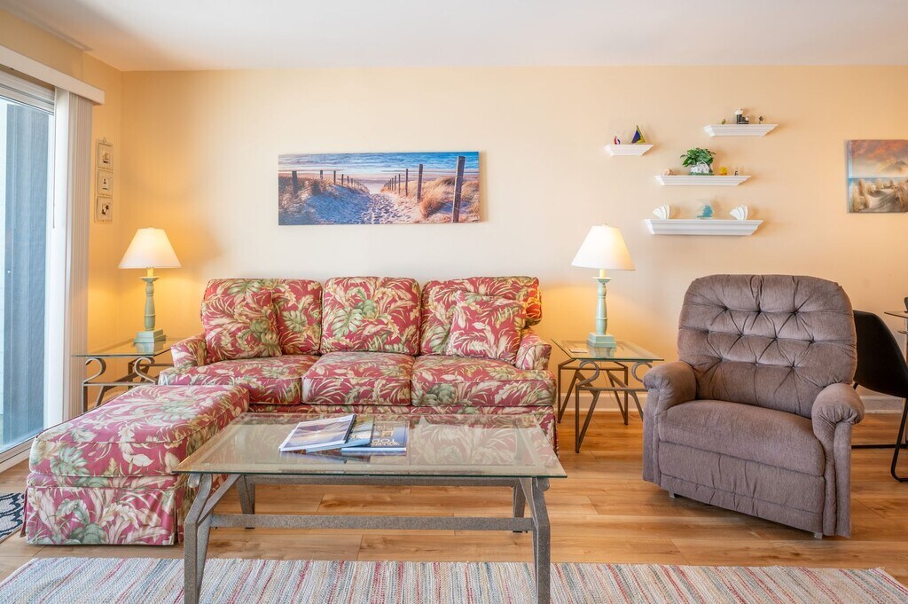 REMAINING DATES FOR THIS YEARS OFF-SEASON DEC 1ST - MID-MAY Connect intimately with the ocean from either your living room or primary bedroom suite. The Sandbox is the true meaning of oceanfront, with sweeping views from the windows and oceanfront balconies that have you hanging out over the beach! Our first-floor condo with elevator hovers over the spectacular Coquina Rock formations of Kure Beach fame. Hemingway-style home furnishings are immersed in a fresh, bright, spa-toned interior for a unique, sophisticated vacation cocoon. Embrace the luxury of original art, plush area rugs, and tasteful appointments and you will be sure to have the vacation memories are made of. Your off-season monthly rental is located on the oceanfront, giving you access to an expanse of stunning beachfront views at the southern tip of Pleasure Island. Enjoy the amenities of the resort, including an indoor pool, tennis courts, shuffleboard, grills, and playgrounds for the kids. After a day at the beach, visit the recreation center for an indoor pool, spa, sauna, exercise room, and clubhouse. Relax, unwind, and make lasting memories at this beautiful destination! Note: there are no facilities at Ocean Dunes for charging golf carts. Ocean Dunes covered parking is not suitable for large SUVs, please seek a first come first serve visitor parking spot for large vehicles. Always use your parking pass! **Please contact Ann at Sea Coast Rentals for further information and/or to check available dates. Check out all our rentals: both furnished off-season and unfurnished long-term. **