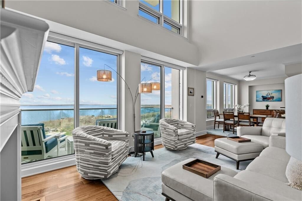 With sweeping views of Prudence Island,the Mount Hope Bridge,and the Newport Bridge,this stunning two-story townhouse-style apartment offers a tranquil retreat on the coast. Thoughtfully designed with comfort and style in mind,this home features a first-floor primary suite,three spacious bedrooms,and three and a half bathrooms. The gourmet kitchen is a culinary dream,boasting ample counter space,high-end Viking and Subzero appliances,and an inviting island with seating for four—ideal for casual meals or entertaining guests. Throughout the apartment,automatic blinds provide effortless control over lighting,allowing you to create the perfect ambiance at any time of day. Step out onto the expansive balcony and be captivated by breathtaking views of Narragansett Bay,stretching from Beavertail to Providence and beyond. Here,you can unwind in the serene atmosphere,soaking in stunning sunsets over the water. This apartment includes two designated parking spaces,one of which is covered for added convenience. Welcome home to your coastal haven,where every detail is designed for relaxation and refined living. MLS ID 1406212
