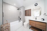 This brand-new 1 bed / 1 bath in Bergen-Lafayette gives you that clean Brooklyn vibe with more room and better light. Think oversized windows, light oak floors, matte-black details, and your own Juliet balcony for fresh air and city views. The kitchen features white quartz countertops, custom cabinetry, and sleek Samsung appliances. The bathroom is fully upgraded with floor-to-ceiling porcelain tile, a glass shower, and a deep soaking tub. Located in a secured-entry building in one of Jersey City’s fastest-growing neighborhoods, you’re surrounded by cafés, parks, boutiques, and quick access to transit. A fresh, stylish space in a thriving community.