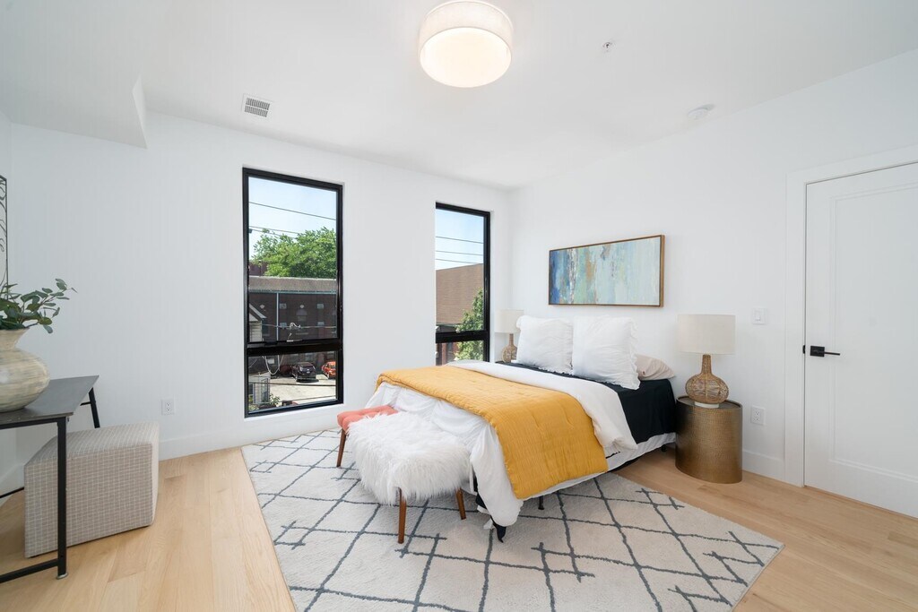 This brand-new 2 bed / 2 bath in Bergen-Lafayette gives you that clean Brooklyn vibe with more room and better light. Think oversized windows, light oak floors, matte-black details, and your own private rooftop for fresh air and city views. Thoughtful design offers impeccable finishes in the 2 bed, 2 bath unit with expansive walk in closet with custom shelving. This unit also offers a two-story floor plan complete with soaring ceilings, illuminating oversized windows and its very own south-facing private roof deck. Design and detail emulate throughout with white oak hardwood floors, extra large windows, and matte black fixtures throughout. Kitchens showcase eat-in white quartz countertops and backsplash, modern custom cabinetry, and stainless Samsung appliances, all ideal for everyday living and entertaining. Tranquil bathrooms bring floor to ceiling porcelain tile, glass showers and soaker tubs, and carefully curated fixtures and fittings for style and ease. Located just off downtown, Bergen Lafayette is Jersey City’s hottest neighborhood loaded with boutique shops, brand new homes, incredible parks and easy NYC commute. Owners enjoy walkability to Lightrail Stations and NYC PATH train, Berry Lane and Liberty State Parks, Liberty Science Center, Liberty Golf Course and more. Built by prized local developer, Pride Investment brings quality construction and high-end finishes to their highly coveted homes.