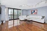 This condo for rent features: -Hardwood Floors throughout -stainless steel kitchen appliances and quartz throughout -Bathroom with walk-in stand up shower -Generous closet space and walk-in closets -Enormous private balcony Building amenities include: -24 hour door staff -Outdoor Pool and sundeck -Enormous Fitness Center and basketball court AND huge outdoor track -24 hour business center and library with free coffee service -Party Room, with kitchen and outdoor patio area Pets are OK! Garage parking is available.