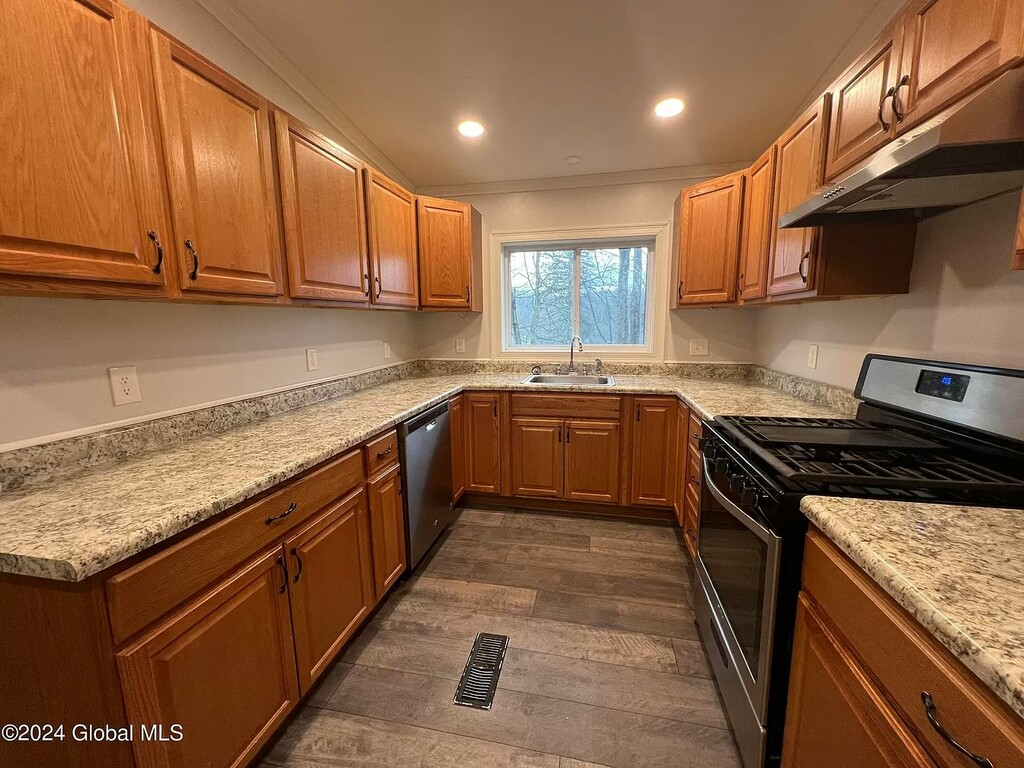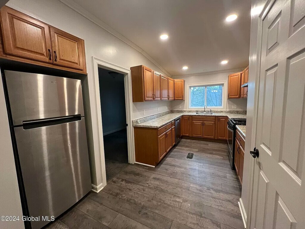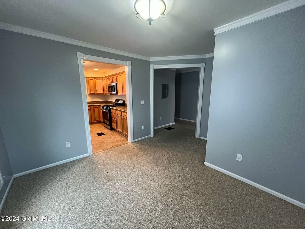 Welcome to this charming apartment located at 10 Highland Terrace in Gloversville, NY. Unit #1 offers a spacious 1421.0 sqft of living space, featuring a classic design that dates back to 1935. This cozy newly renovated unit boasts 2 bedrooms, 1 bathroom, providing ample space for comfortable living. The apartment is filled with natural light, creating a warm and inviting atmosphere throughout. The brand new living room is perfect for relaxing or entertaining guests, while the new well-appointed kitchen is equipped with modern appliances and plenty of storage space. Both bedrooms are generously sized and offer a peaceful retreat at the end of the day, and have brand new carpeting and moldings installed throughout. Situated in a convenient location, this apartment is close to local amenities, shopping centers, and dining options. With easy access to major highways, commuting to nearby cities is a breeze. This property is available for a 12-month lease starting on July 15, 2024, making it an ideal option for those who want a beautiful new apartment that has been completely renovated with all new appliances, fixtures and energy efficient windows.