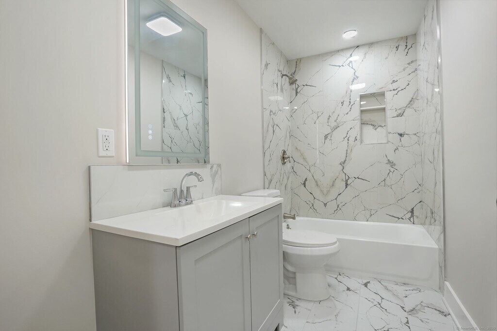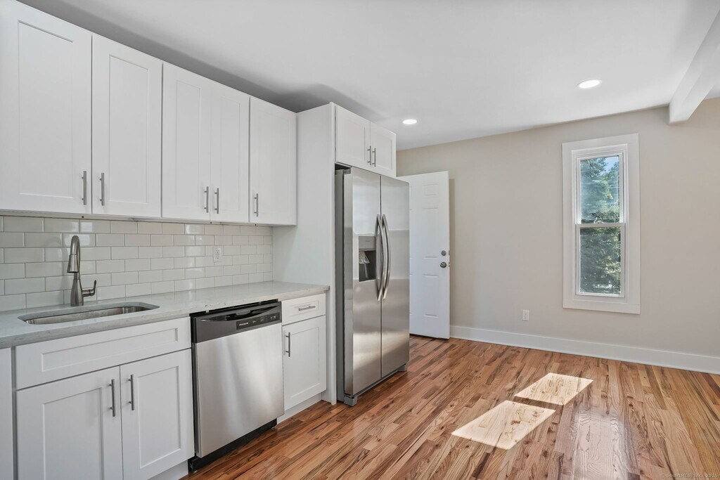 - Additional Property Details- Call for Availability - Step into this beautifully renovated second-floor apartment that blends modern style with everyday comfort. Featuring three good size bedrooms, gleaming hardwood floors, and high-end finishes throughout, this home offers both sophistication and convenience. The kitchen shines with white shaker-style cabinetry, stone countertops, stainless steel appliances, and a classic subway tile backsplash-perfect for cooking and entertaining. The luxurious bathroom features intricate tile work and elegant fixtures that elevate the space. Enjoy central air conditioning, forced hot air heating, and natural gas utilities for year-round comfort. Added convenience comes with an in-unit washer and dryer and off-street parking. Located in the heart of Downtown Shelton, you're just a short walk from local shops, restaurants, and the vibrant downtown lifestyle, with easy access to Route 8 and Griffin Hospital. Ready for immediate occupancy-this rare, newly remodeled apartment won't last long! MLS# 24131707