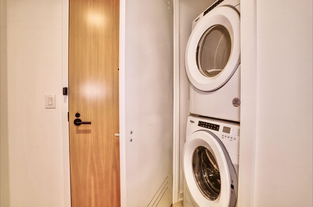 Experience elevated city living in this beautifully designed one-bedroom residence located in a premier luxury high-rise building, 151 Bay Street by Toll Brothers. This light-filled apartment features large picture windows with stunning city views, an open-concept layout, and high-end finishes throughout. The modern kitchen is equipped with premium Bosch stainless steel appliances, quartz countertops, and custom cabinetry, seamlessly flowing into the spacious living and dining area - perfect for entertaining or relaxing at home. The generously sized bedroom offers excellent closet space and a serene retreat, while the spa-inspired bathroom showcases a large soaking tub, designer fixtures and elegant tilework. Hardwood flooring and in unit washer/dryer punctuate this incredible condo. Residents enjoy access to an exceptional suite of amenities, including a state-of-the-art fitness center, 24-hour concierge, sky lounge, rooftop terrace, fitness center, sundeck & pool, children's playroom, and game room. Ideally located near top dining and shopping, this residence combines luxury, comfort, and convenience in one of Jersey City’s most sought-after buildings. Only a few blocks from the Grove Street PATH station, commuting into NYC is a breeze. Welcome home!