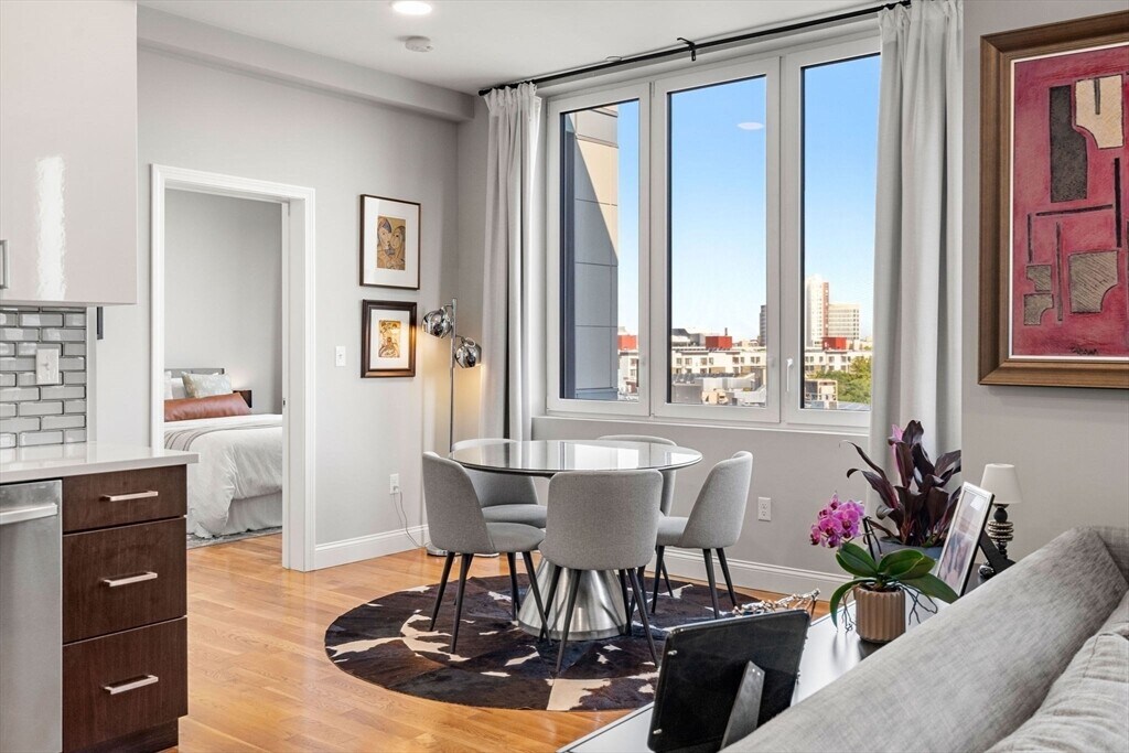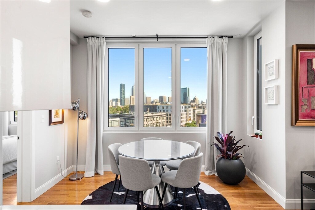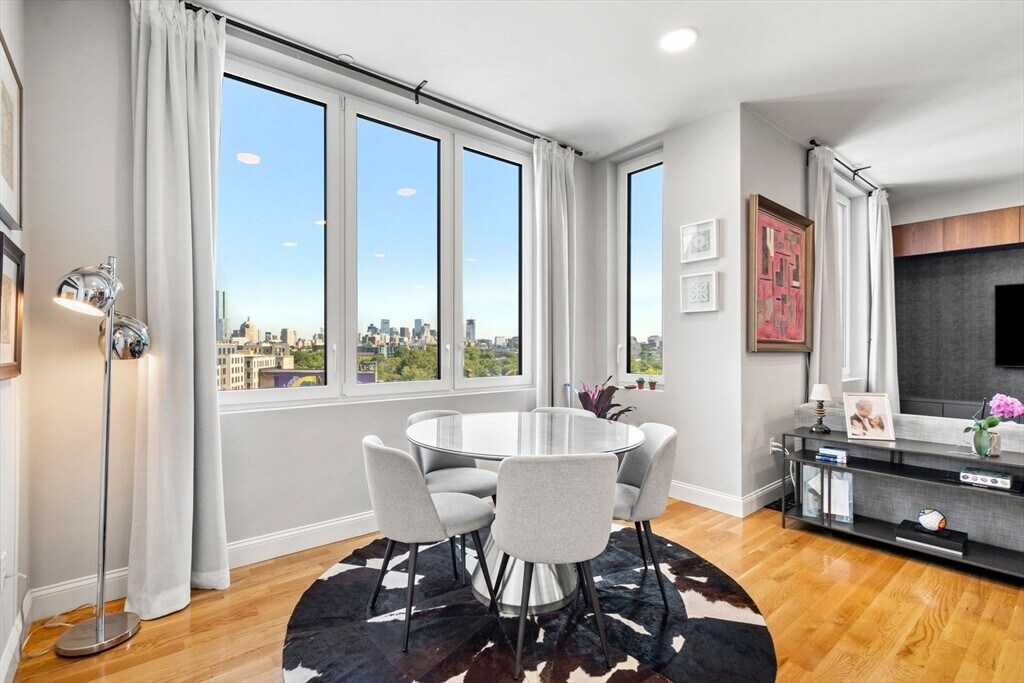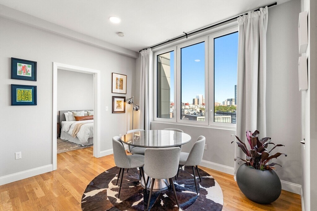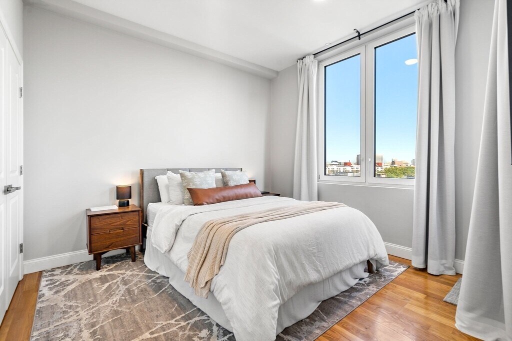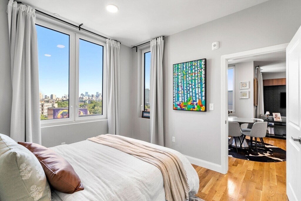 Move into penthouse condominium located in Roxbury's historic Nubian Square,and enjoy the perks of on-site staff,professional management,2 elevators and bicycle storage. This top-floor 1 bedroom home showcases unobstructed views of Downtown's skyline while offering a functional open concept floor plan. This home features 9-foot ceilings throughout with ambient recessed lighting,triple-pane windows,oak-hardwood/tile flooring & in-unit Bosch w/d set. Living room features custom storage with wine cooler. The kitchen is fitted with quartz countertops & a lux Samsung kitchen-appliance package. Conveniently located in the heart of Boston,you will have easy access to medical centers,major universities,downtown Boston,Public Transit (train/bus) and highway. Available Dec. 1 2025. MLS# 73440453