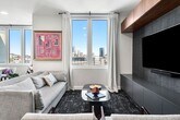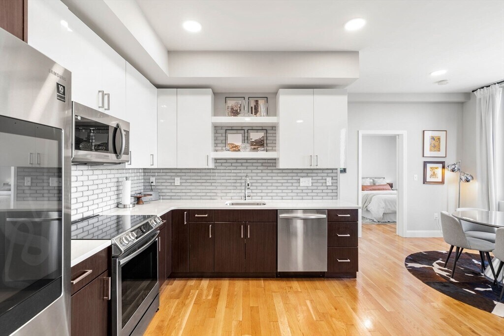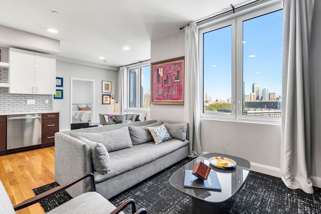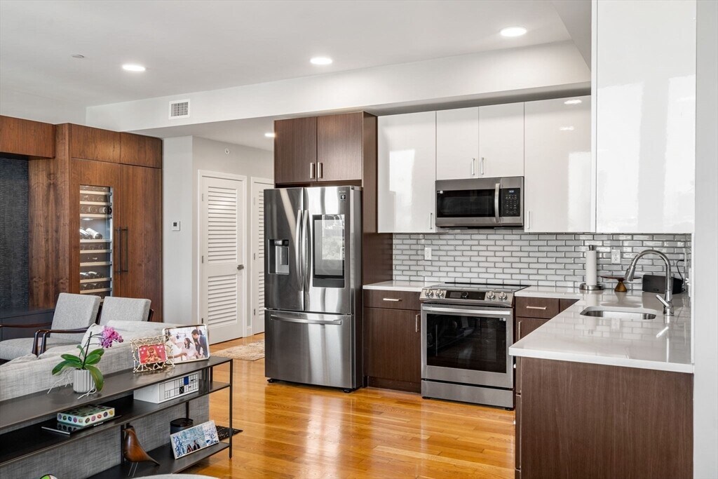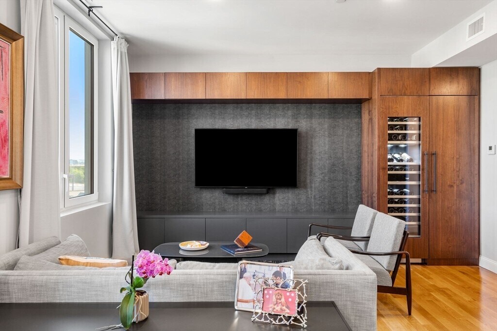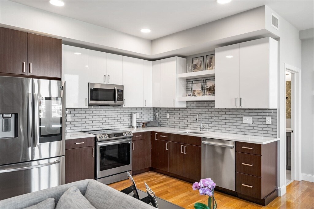 Move into penthouse condominium located in Roxbury's historic Nubian Square,and enjoy the perks of on-site staff,professional management,2 elevators and bicycle storage. This top-floor 1 bedroom home showcases unobstructed views of Downtown's skyline while offering a functional open concept floor plan. This home features 9-foot ceilings throughout with ambient recessed lighting,triple-pane windows,oak-hardwood/tile flooring & in-unit Bosch w/d set. Living room features custom storage with wine cooler. The kitchen is fitted with quartz countertops & a lux Samsung kitchen-appliance package. Conveniently located in the heart of Boston,you will have easy access to medical centers,major universities,downtown Boston,Public Transit (train/bus) and highway. Available Dec. 1 2025. MLS# 73440453