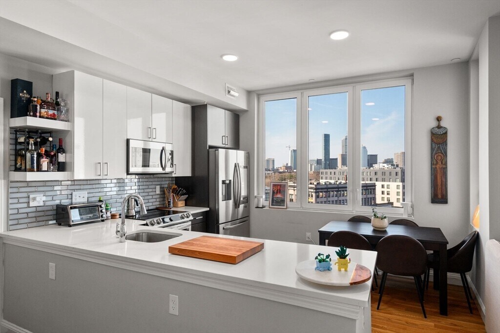 Penthouse living in the heart of Nubian Square. This modern,professionally managed building offers concierge service,2 elevators and a welcoming residential lobby designed for comfort and ease. Unit #608 features an open layout with 9-foot ceilings,oversized triple-pane windows,and stunning skyline views,creating a bright and inviting living space. The sleek kitchen with a large peninsula is perfect for both everyday living and entertaining,while the in-unit Bosch washer/dryer adds convenience. Enjoy a quiet,well-maintained community just minutes from Boston Medical Center,Longwood Medical Area,Northeastern University,and downtown Boston. With easy access to public transit,major highways,parks,and neighborhood dining,this location is ideal for young professionals,graduate students,and city residents seeking both accessibility and a peaceful place to call home. MLS# 73500876
