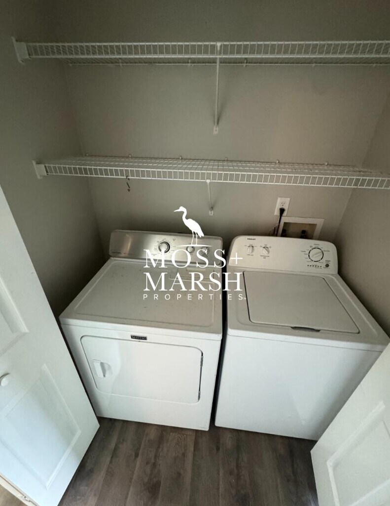 Clean and quiet. Charming condo boasts all hard surface flooring makeing it easy and fast to clean, no carpet! Enjoy a walk out private back deck, great room and bedroom over look a peaceful green belt, washer and dryer in unit. This is a gated community. Convenient to Hilton Head and the heart of Bluffton. Beautiful community with swimming pool, nicely appointed workout room, outdoor grills, residents room available for rent from management office. Square footage is approximate. Water is set fee at $35 per month (not included in rent), Management charges a yearly parking and ammenity card fee This is a no smoking unit.