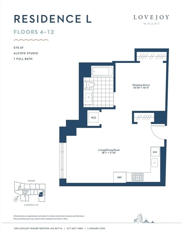 No listing agent fee. Elegant 692 sq.ft. studio with private sleeping alcove with door and closet at prestigious Lovejoy Wharf. Beautifully designed with a sleek kitchen featuring integrated appliances and half island, marble bath, in-unit laundry, and oversized window bathed in southeast natural light. The sleeping alcove with door and closet is like a bedroom and can hold a Queen size bed and some furniture. Lovejoy Wharf offers 24/7 concierge, doorman, fitness center, rooftop terrace with panoramic views, game room, library, children’s playroom, pet spa, and on-site dining. Optional valet parking available ($500/mo). Optional private storage in the building ($125/mo). Ideally located near North Station, Green line stops, TD Garden, MGH, and with easy access to Downtown, Back Bay, NEU, and BU. Electric is the only utility expense. Sophisticated city living in a full-service building.The unit will be delivered without furniture.