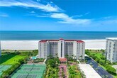 Your beachfront paradise awaits in this chic and modern 2 bedroom penthouse unit with sweeping gulf views. Tastefully decorated and modernized,this spacious unit has everything you could want in a Marco Island escape. Direct gulf views with breathtaking sunsets,updated kitchen with white cabinetry and stainless steel appliances including a wine fridge. Breakfast bar,full dining area and a comfortably furnished living area offer a place to relax and entertain after a day at the beach. Enjoy our world famous sunsets from your private balcony,with additional space for lounging and dining. Primary bedroom features a king bed,walk-in closet and large en-suite bathroom with dual vanities and glass shower. Guest bedroom offers a nice retreat for visitors with a queen bed,flat screen TV,and a second remodeled bath. Laundry In-unit. Crescent Beach has beach access point,community pool and tennis courts. Assigned parking. Just a few minutes from the island's best dining and shopping.