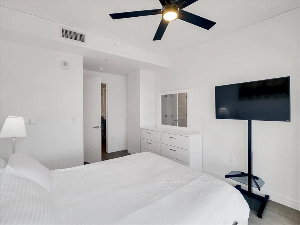 Experience luxury living and feel at home in this exceptional San Diego residence, offering striking architecture, breathtaking views, and refined interiors. This 1-bedroom apartment features Jenn-Air stainless steel appliances, waterfall islands, high-gloss cabinetry, polished quartz countertops, and chrome fixtures. Enjoy access to a state-of-the-art fitness center, spa, resort-style pool, rooftop terrace, sun deck, cabanas, and vibrant courtyards with grilling areas. In-home features include high-speed internet, washer/dryer, air conditioning, heating, and ceiling fans. The California Room, with lounge seating, drink rails, and TVs, is ideal for entertaining or unwinding. Spacious layouts offer double vanities, soaking tubs, and ample storage. Optional furnished apartments are available. A dedicated dog park with wash stations and pet drinking fountains welcomes furry companions. Enjoy sweeping views of the Downtown skyline and bay from expansive outdoor decks. Courtyards with lounge seating, grilling stations, and fire pits provide relaxed social spaces. Floor-to-ceiling windows fill the apartment with natural light, while roller shades ensure privacy. The community also features bike storage, putting greens, and a gated entry. Exclusive access to the 32nd-floor Horizon Lounge offers panoramic cityscape views. Host poolside events or practice your swing on the golf simulator and putting green. Benefit from 24-hour package reception. [SI]