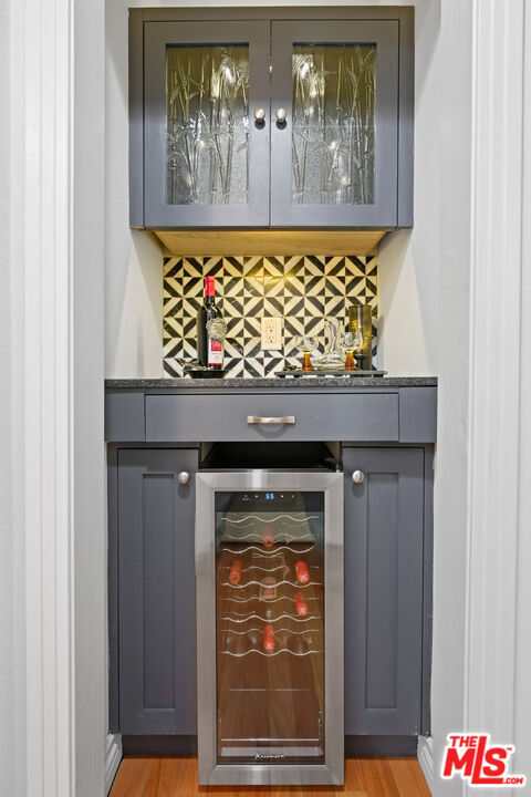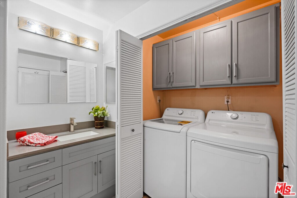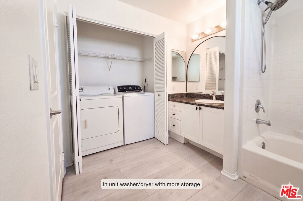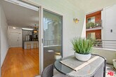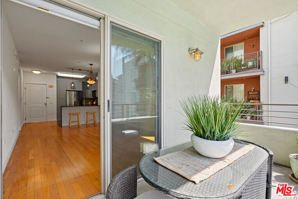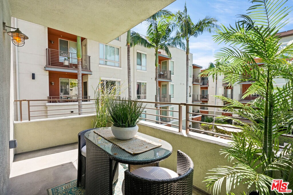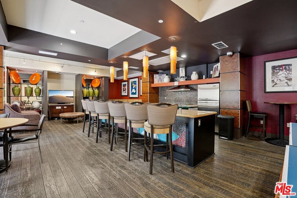 Warm wood floors and abundant natural light set the tone in this bright end-unit 1-bedroom. An extra window and a sliding glass door bring in light from multiple exposures, creating an open, airy feel throughout the living space. Step out to a covered balcony overlooking the palm-lined pool and spa courtyard, where soft breezes and greenery offer a peaceful backdrop. An updated kitchen features new cabinetry, including corner revolving shelves for efficient storage, a double-door refrigerator, and a bold black-and-white patterned tile backsplash that brings a graphic, modern touch. A double-basin stainless steel sink with a high-arc pull-down faucet is paired with a gray quartz countertop, which is lowered to create a more functional breakfast bar and prep space. A built-in beverage bar adds a nice custom detail. The oversized bedroom offers flexibility for a comfortable retreat and includes a walk-in closet. In-unit brand new washer and dryer with storage cabinets are conveniently located in the spacious bathroom. Enjoy Savoy's resort-style amenities, including a pool, spa, fitness center, rooftop deck, landscaped courtyards, and a 24-hour attended lobby. Located in the heart of Little Tokyo near the Arts District, it offers easy access to dining, cafes, and neighborhood favorites. Lease includes some utilities and 1 assigned parking space. Storage unit available for an additional monthly fee. MLS ID 26752027