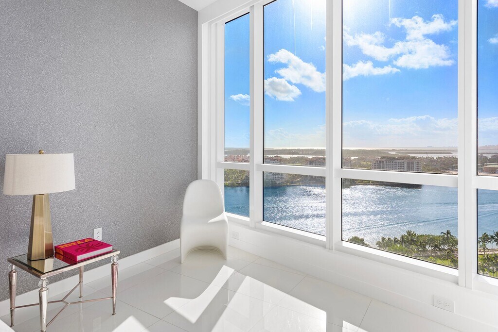 Experience pure bliss the moment you step into a bright, private elevator vestibule usuring you into a fully furnished, glamorous corner home in the sky, hovering over the most southern tip of Miami Beach. Substantially upgraded with fine appointments, including custom designed mirrored paneling, hand lacquered walls and custom wallpaper. Enjoy incredible sunset shows every day over the ever-changing Miami skyline, while cruise ships parade on by just below your oversized, southwest facing terrace. Generous walk-in closets, large laundry room +assigned storage room. Unequaled amenities include an 18K SF wellness center, private beach+restaruant, 3 har-tru tennis courts, 3 pools, all sprawling over a 13-acre private oasis. Walk to one of the best culinary scenes in Miami Beach.