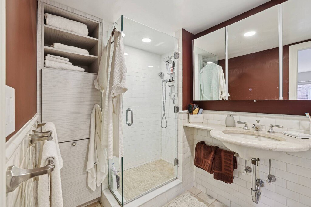 This sophisticated corner apartment, in the heart of midtown Manhattan, is a true urban sanctuary, offering an abundance of natural light and sweeping open city views. With South and East exposures, it captures the energy of one of New York's most vibrant neighborhoods. Spanning 3 bedrooms and 2 bathrooms, the home has been meticulously renovated, featuring solid pine plank floors, custom lighting throughout, and thoughtfully designed closets that maximize storage. The open kitchen is a standout with its expansive marble island, sleek marble backsplash, and custom cabinetry, 5 burner Miele electric cooktop, Fisher Paykel refrigerator and a wine refrigerator, ideal for both everyday living and entertaining. The dining alcove provides a perfect space for meals, while the generously sized primary bedroom offers a peaceful retreat with a windowed en suite bathroom and an impressive custom walk-in closet/dressing room. The bathrooms are renovated to reflect a signature New York style, with a luxurious jacuzzi and walk-in shower in the primary bath. This apartment also includes a convenient LG washer/dryer, recessed lighting, solid pine plank floors, and ample storage space. Located steps from Central Park and New York's renowned cultural landmarks, Carnegie House offers a full-service experience with amenities such as an on-site garage and pet-friendly policies. This apartment is a rare opportunity to experience sophisticated city living in one of the most coveted locations in New York.