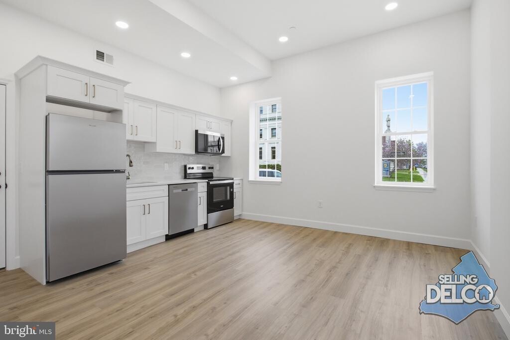 Live in the absolute heart of Media Borough and walk to everything! Welcome to this brand-new, fully renovated 1 bed, 1 bath apartment offering the perfect blend of modern finishes and unbeatable location. Just steps from State Street, you’ll have restaurants, shops, dining, and everything Media has to offer right outside your front door. Inside, you’ll find a bright, open-concept living space with wide-plank flooring, recessed lighting throughout, and oversized windows that flood the home with natural light. The kitchen is clean and sharp, featuring white shaker cabinetry, quartz countertops, stainless steel appliances, a tile backsplash, and gold accent hardware for a subtle upscale touch. The bathroom is beautifully finished with a sleek glass-enclosed shower, custom tile work, and a modern vanity-everything feels fresh, crisp, and thoughtfully designed. Additional highlights include: In-unit washer and dryer High ceilings that make the space feel even larger Efficient layout with great flow for everyday living Brand-new construction feel throughout Optional private, locked storage unit available in the basement for $50/month- perfect for bikes, seasonal items, or extra storage. If you’ve been waiting for something turnkey in Media Borough where you can truly enjoy the lifestyle- this is it. Additional information: Tenant responsible for PECO and cable/internet. First month rent, last month rent, and security deposit due at signing ($7200) 2 small pets allowed. $300 deposit and additional $25/month. Street Parking