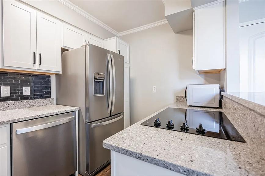 This updated 1-bedroom, 1-bath condo offers low-maintenance living in a well-maintained, desirable building. The third-floor unit features an updated kitchen with soft-close cabinetry, quartz countertops, stainless steel appliances, and recessed lighting. The open living and dining area showcases luxury vinyl plank flooring, while the spacious bedroom comfortably fits a king-size bed and includes a custom built-in closet system. Additional highlights include a walk-in pantry, ample in-unit storage, oversized building storage, and convenient laundry access. covers heat, water, trash, snow removal, landscaping, and building insurance, with on-site/off-street parking available. Ideally located near parks, shopping, and dining, this condo is move-in ready and can also be rented—perfect for both owner-occupants and investors. Move-In Ready One-Bedroom Condo!